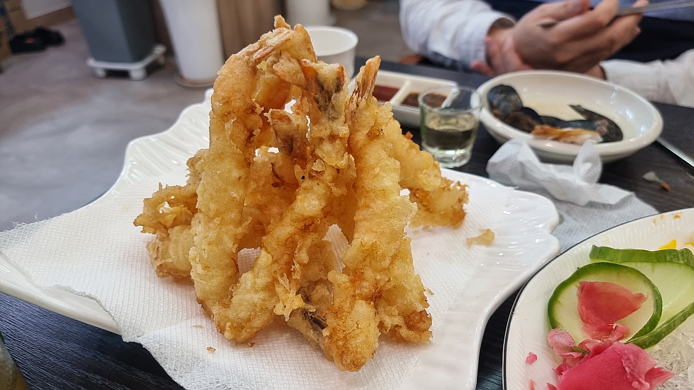 그래도 나중에 나온 고등어 자반 구이가 안주의 역할을 톡톡히 해주었다. 다른 사람들 리뷰를 보니 고등어가 너무 맛나서 생선 구이 전문점 보다 낫다는 글이 있었다. 과연 그 말이 맞았다. 하지만 맛있다고 하나 더 시키면 돈을 더 내야 한다. 새우튀김을 좋아하는 사람을 위해 특별히 20,000원 짜리 새우튀김도 주문했다. 이것도 일식집의 새우튀김 이상의 맛난 요리였다. 과연 여긴 다 맛이 좋구나... 하지만 그래도 너무 아쉽다. 우린 너무 빨리 먹어 치웠다. 이런 맛난 음식들은 서서히 음미하며 먹어야 하는데... 한 시간도 안 되어 일어나려니 영 발이 떨어지지 않더라는...
