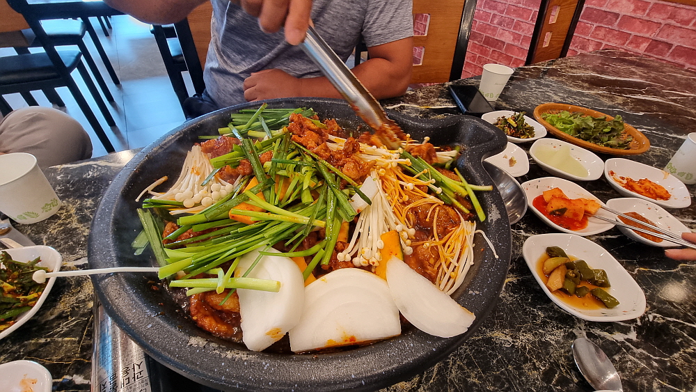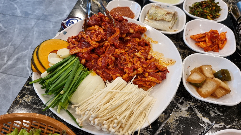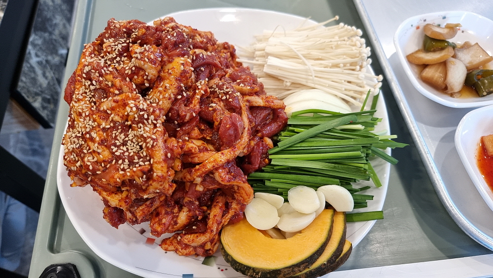 원래 자주 먹었던 오리고기는 생고기였다. 하지만 여기에서는 주물럭 고기를 먹게 되었다. 주물럭이라는 것이 결국 양념고기라는 말인데 오리고기로 주물럭을 먹는다는 것이 흔한 일은 아니다. 그래서 이 자리가 더 귀하게 느껴졌다. 누구나 다 먹는 음식이 아니라 특별하게 먹는 생경한 음식이 주는 잔잔한 감동이었다. 돼지고기 양념은 매운 것도 있고, 달달한 간장 양념도 있다. 심지어 카레에 넣어 먹기도 한다. 과연 오리고기는 어떻게 먹어야 가장 맛이 있을까? 이날 우리가 경험한 것은 매콤한 제육볶음 같은 양념이었다. 이런 양념고기구이는 하얀 쌀밥에 올려 먹어야 제맛이기는 하다.