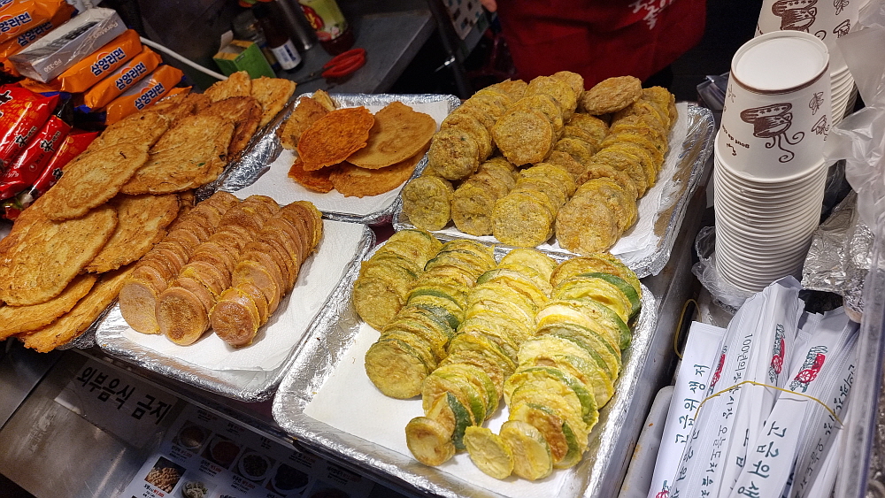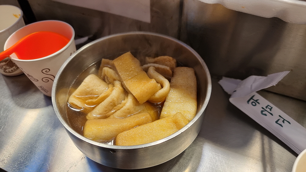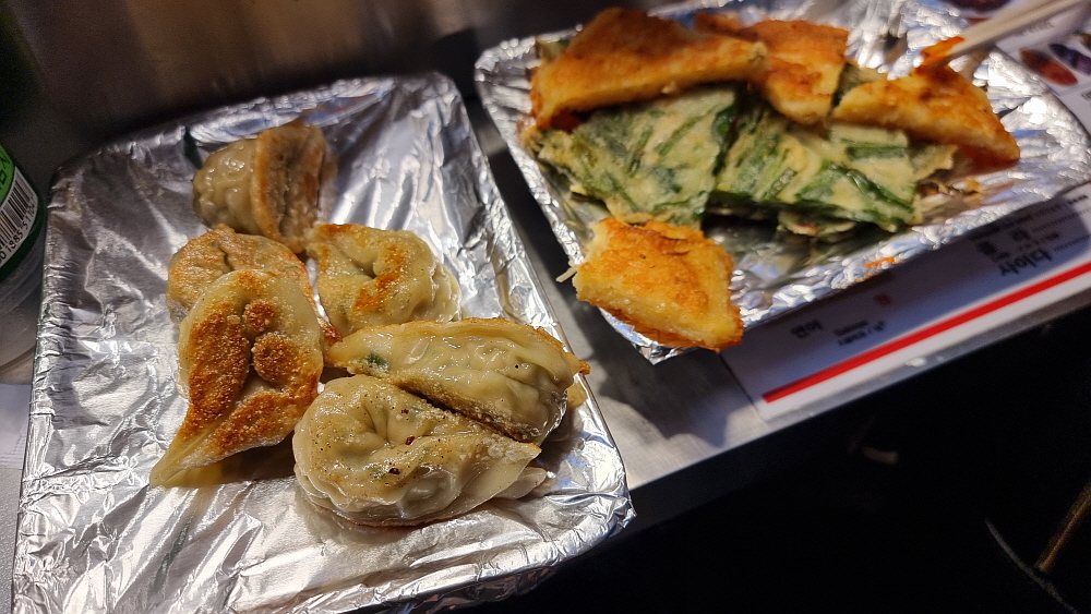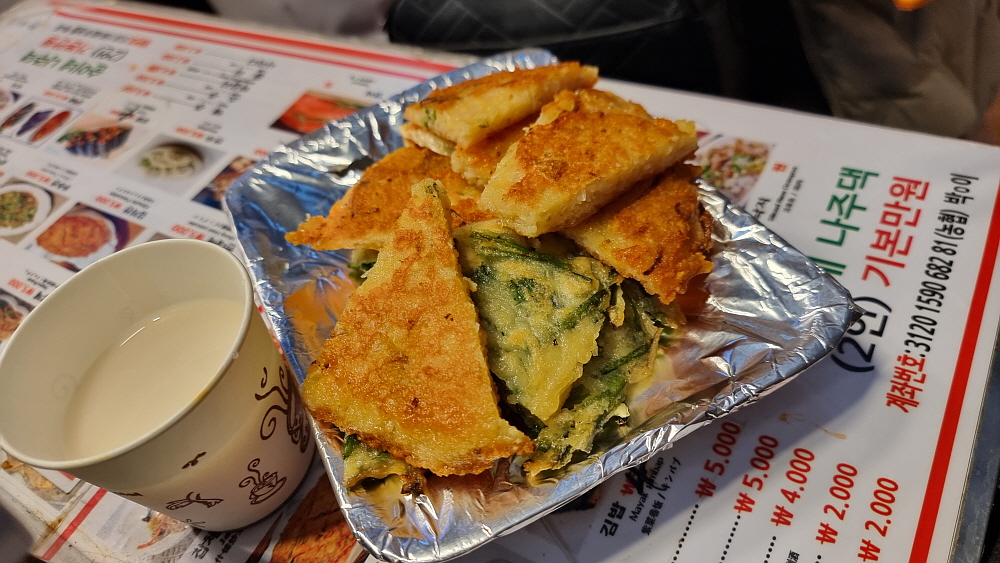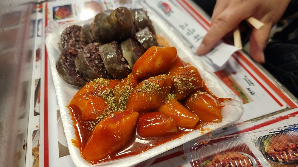 산낙지도 먹어보고 싶었지만 그건 횟집용 아이템이라 생략하고 막걸리도 주문했다. 전과 떡볶이를 파는 것이 의정부 제일시장의 점포들과 조금 차이가 있는 점이다. 의정부에서는 전은 전만, 떡볶이와 오뎅집은 그것만 이렇게 구분이 되어 있는데 여기는 그냥 다양한 메뉴들을 한 집에서 모두 팔고 있었다. 가격이나 나오는 음식의 양을 보면 언론에서 비판적으로 써댄 기사처럼 엄청 바가지 이런 느낌은 아니었다. 워낙 지나다는 사람이 많다보니 다양한 사람들의 취향을 모두 맞출 수 없기에 나온 부정적인 기사는 아닐까 하는 생각을 해봤다. 아주 인심이 후하다 이런 것은 아니지만, 너무하다 할 정도도 아니었다는 것...