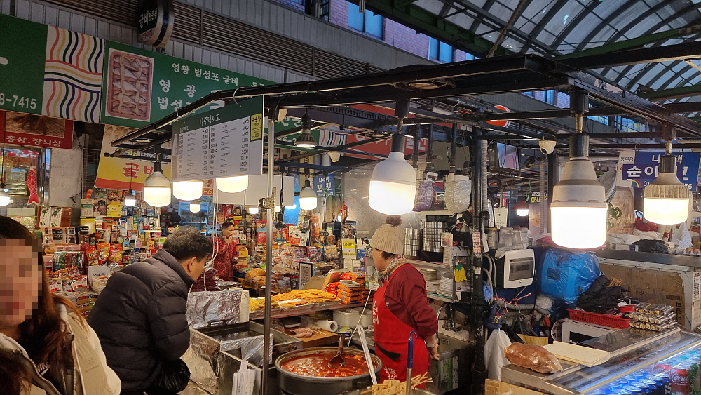 산낙지도 먹어보고 싶었지만 그건 횟집용 아이템이라 생략하고 막걸리도 주문했다. 전과 떡볶이를 파는 것이 의정부 제일시장의 점포들과 조금 차이가 있는 점이다. 의정부에서는 전은 전만, 떡볶이와 오뎅집은 그것만 이렇게 구분이 되어 있는데 여기는 그냥 다양한 메뉴들을 한 집에서 모두 팔고 있었다. 가격이나 나오는 음식의 양을 보면 언론에서 비판적으로 써댄 기사처럼 엄청 바가지 이런 느낌은 아니었다. 워낙 지나다는 사람이 많다보니 다양한 사람들의 취향을 모두 맞출 수 없기에 나온 부정적인 기사는 아닐까 하는 생각을 해봤다. 아주 인심이 후하다 이런 것은 아니지만, 너무하다 할 정도도 아니었다는 것...