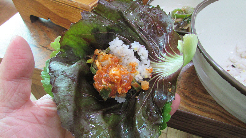 쌈이라면 누구 못지 않게 좋아하는 우리 부부는 쌈밥 집에 가면 돈 아깝다는 생각을 하지 않을 정도로 쌈채소를 많이 먹는다. 왜 그런지는 몰라도 내촌면 47번 국도변에는 유난히 쌈밥집들이 많다. 이 근처에 쌈 농장이 있는 것인지 신선한 채소가 잘 나는 것인지 그 이유는 모르지만 지나면서 한 번 들러 봐야 겠다고 생각했다. 그 쌈밥 집들 중에 우리는 가게 밖 주차장에 차들이 많은 집을 골라 들어가기로 했고 그래서 간 곳이 바로 이곳 서파검문소 부근의 내고향 쌈밥 집이었다.