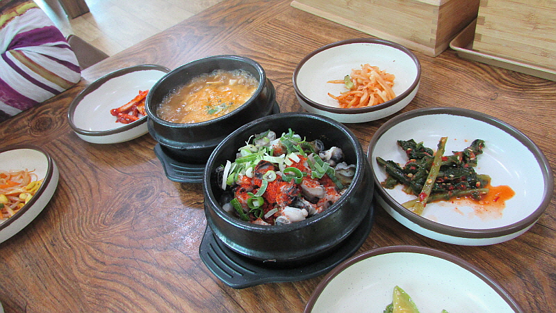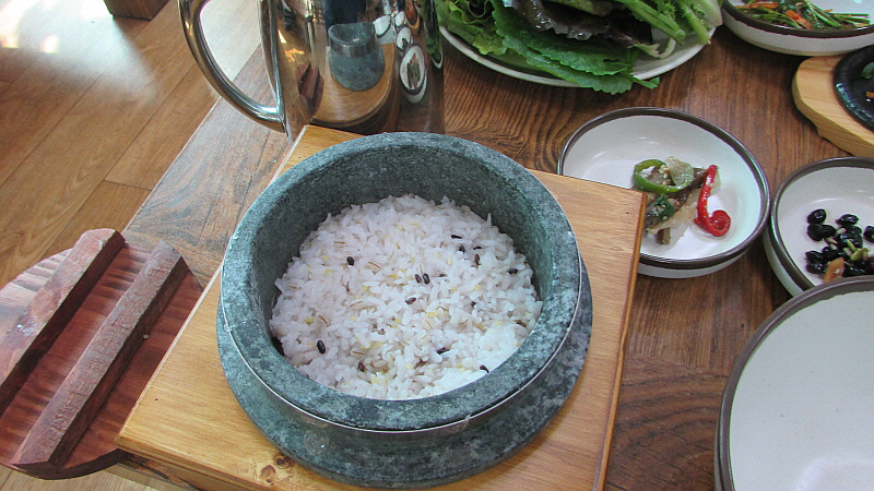 평소에도 우렁쌈밥을 즐기는 우리는 그 메뉴를 주문하려다 쌈밥 정식을 시켜야 돌솥밥이 나온다는 것을 발견하고 정식으로 두 개를 주문했다. 사실 제육은 잘 먹지 않지만 워낙 돌솥을 좋아하는 마눌을 위해 이날은 그렇게 하기로 했다. 나야 뭐 돌솥이든 그냥 공기밥이든 상관하지 않지만 누룽지와 구수한 돌솥밥을 평소에도 아주 좋아하는 마눌이다 보니 이날 만큼은 그녀의 의견을 존중하기로 했다.