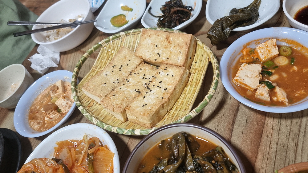 거기에 간이 듬뿍 밴 시래기를 얹어 밥을 먹으면 정말 제대로 된 밥을 먹고 있다는 생각이 든다. 모든 음식은 우리 몸과 잘 맞는 우리네 것이다. 추가로 주문한 들기름 붙임 두부도 제맛이다. 솔직히 이런 음식들은 막걸리아 함께 먹어야 한다. 하지만 점심이고, 일행 중에 술 먹는 사람이 없다보니 퍽퍽하게 그냥 밥만 먹었다. 좋은 음식과 술 한 잔은 조화 그 자체인데 말이다. 시간이 좀 일러서였는지 손님이 그리 많지는 않았다. 하지만 여전히 이집은 식사 때 오면 자리를 잡기가 쉽지 않은 곳이다. 이런 밥집이 근처에 없기도 하지만 뭐랄까 정감이 가기 때문이 아닐까 한다.