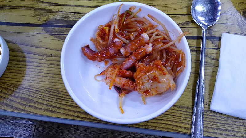 먼저 주문한 낙지 아구찜이 나왔다. 전체적인 비주얼은 엄청 매워 보이지만 미리 맵지 않게 해달라고 했기 때문에 생각처럼 맵지는 않았다. 달달한 맛이 강한 속칭 퓨전 스타일의 찜으로 젊은 사람들도 쉽게 달려 들 정도의 맛이었다. 술 안주로 이만한 것이 또 있을까? 그냥 저 안에 들어 있는 콩나물 만으로도 소주 몇 병은 마실 수도 있을 것이다. 함께 간 모두가 이런 생선찜을 좋아해서 다들 음식이 나오자 마자 열심히 젖가락 질을 했다. 즐거운 시간의 필수요소는 맛있는 음식과 맘 편한 사람들, 그리고 이런 여유있는 시간이다. 주말을 앞둔 저녁에 즐겁게 먹을 수 있다는 사실 만으로도 참 행복한 시간이다.