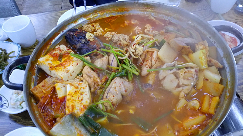 주차장만 넓직한 것이 아니라 홀도 무척이나 컸다. 예전에 아주 오랜 전엔 여기가 이 업종이 아니었던 것 같은데 그 때 뭘 하던 곳인지 주인은 그대로 인지 잘 모르겠다. 나야 동태 같은 생선이 좋으니 고기집보다야 이런 곳이 당연 반갑다. 미리 낙지 아구찜을 주문하고 갔지만 가게 이름이 동태인데 어찌 동태맛을 안 볼 수 있을까? 그래서 무리하여 동태전골도 더 주문했다. 과연 이 많은 음식을 우리가 먹을 수 있을지 모르지만 구원투수로 한 사람이 더 합류하여 그런 걱정은 하지 않아도 되었다.