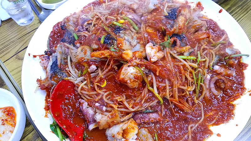 먼저 주문한 낙지 아구찜이 나왔다. 전체적인 비주얼은 엄청 매워 보이지만 미리 맵지 않게 해달라고 했기 때문에 생각처럼 맵지는 않았다. 달달한 맛이 강한 속칭 퓨전 스타일의 찜으로 젊은 사람들도 쉽게 달려 들 정도의 맛이었다. 술 안주로 이만한 것이 또 있을까? 그냥 저 안에 들어 있는 콩나물 만으로도 소주 몇 병은 마실 수도 있을 것이다. 함께 간 모두가 이런 생선찜을 좋아해서 다들 음식이 나오자 마자 열심히 젖가락 질을 했다. 즐거운 시간의 필수요소는 맛있는 음식과 맘 편한 사람들, 그리고 이런 여유있는 시간이다. 주말을 앞둔 저녁에 즐겁게 먹을 수 있다는 사실 만으로도 참 행복한 시간이다.
