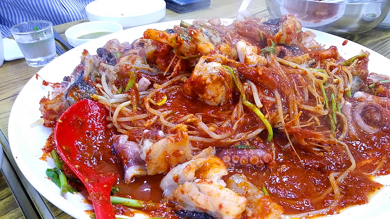 먼저 주문한 낙지 아구찜이 나왔다. 전체적인 비주얼은 엄청 매워 보이지만 미리 맵지 않게 해달라고 했기 때문에 생각처럼 맵지는 않았다. 달달한 맛이 강한 속칭 퓨전 스타일의 찜으로 젊은 사람들도 쉽게 달려 들 정도의 맛이었다. 술 안주로 이만한 것이 또 있을까? 그냥 저 안에 들어 있는 콩나물 만으로도 소주 몇 병은 마실 수도 있을 것이다. 함께 간 모두가 이런 생선찜을 좋아해서 다들 음식이 나오자 마자 열심히 젖가락 질을 했다. 즐거운 시간의 필수요소는 맛있는 음식과 맘 편한 사람들, 그리고 이런 여유있는 시간이다. 주말을 앞둔 저녁에 즐겁게 먹을 수 있다는 사실 만으로도 참 행복한 시간이다.