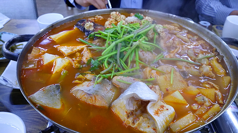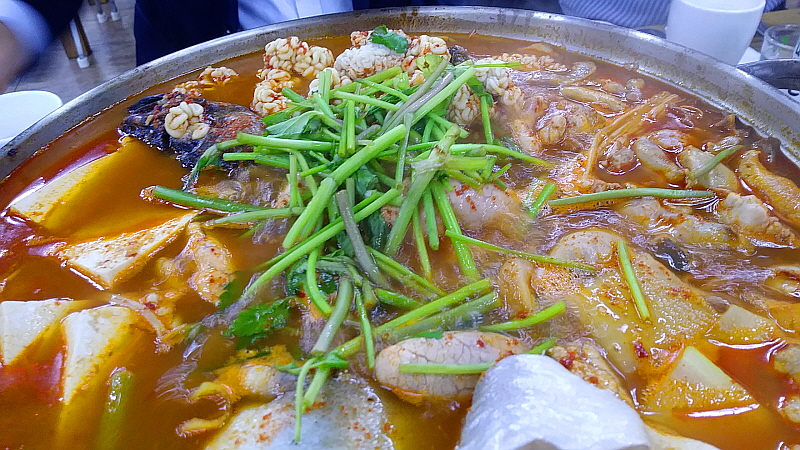 주차장만 넓직한 것이 아니라 홀도 무척이나 컸다. 예전에 아주 오랜 전엔 여기가 이 업종이 아니었던 것 같은데 그 때 뭘 하던 곳인지 주인은 그대로 인지 잘 모르겠다. 나야 동태 같은 생선이 좋으니 고기집보다야 이런 곳이 당연 반갑다. 미리 낙지 아구찜을 주문하고 갔지만 가게 이름이 동태인데 어찌 동태맛을 안 볼 수 있을까? 그래서 무리하여 동태전골도 더 주문했다. 과연 이 많은 음식을 우리가 먹을 수 있을지 모르지만 구원투수로 한 사람이 더 합류하여 그런 걱정은 하지 않아도 되었다.