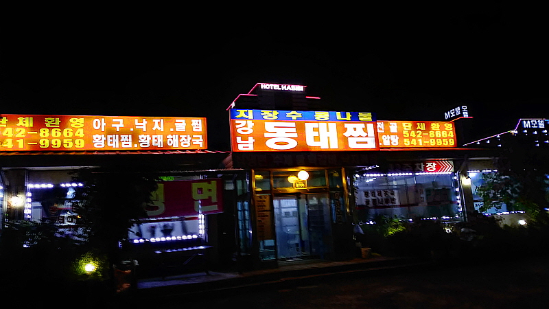 모처럼 역전의 용사들이 모이는 저녁 송우리 모처에서 회동을 하기로 했다. 과연 오늘은 어디가서 저녁과 술을 마셔야 잘 했다는 평을 들을까? 송우리에 그렇게 식당이 많지만 막상 어디를 가야할까 고민하다보면 늘 가던 곳을 가게 된다. 오늘은 좀 다른 곳을 가고 싶었다. 그러다 문득 생각이 났다. 예전에 들어 갔다가 갑자기 약속이 취소되는 바람에 그냥 나왔던 송우리 43번 국도변의 넓직한 주차장이 인상적인 강남동태찜 집이었다.