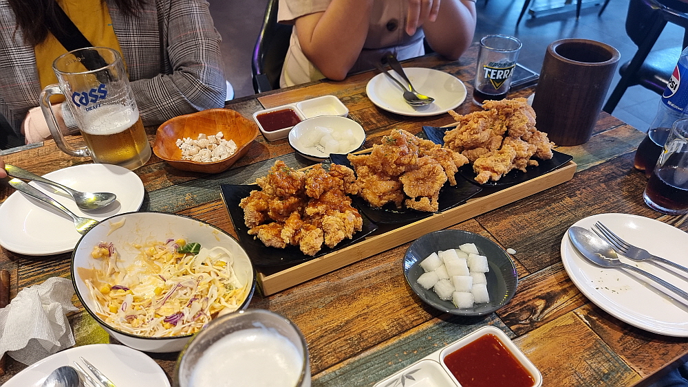 말 그대로 맥주가 쭉쭉 들어갔다. 치맥이 왜 진리인지 다시 한 번 깨닫은 날이라 하겠다. 대단한 요리도 아닌데 전국민을 애끓게 만드는 마성의 조합이다. 아마 이날도 전국적으로 엄청난 양의 닭들이 뜨거운 기름에 튀겨졌을 것이다. 이 시점에서 닭들에게 경의를 표하고 싶다. 인간을 위해 그렇게 엄청난 희생을 당한 닭들을 위해 애도를... 하지만 닭이 없는 현대 사회는 상상할 수 없기에 앞으로도 이런 신세를 계속 질 수밖에 없다는 점에 다시 한 번 머리를 숙인다. 그냥 술 한 잔 편하게 가성비 좋은 곳에서 먹는다면 짱닭치킨 참 괜찮은 곳이다.