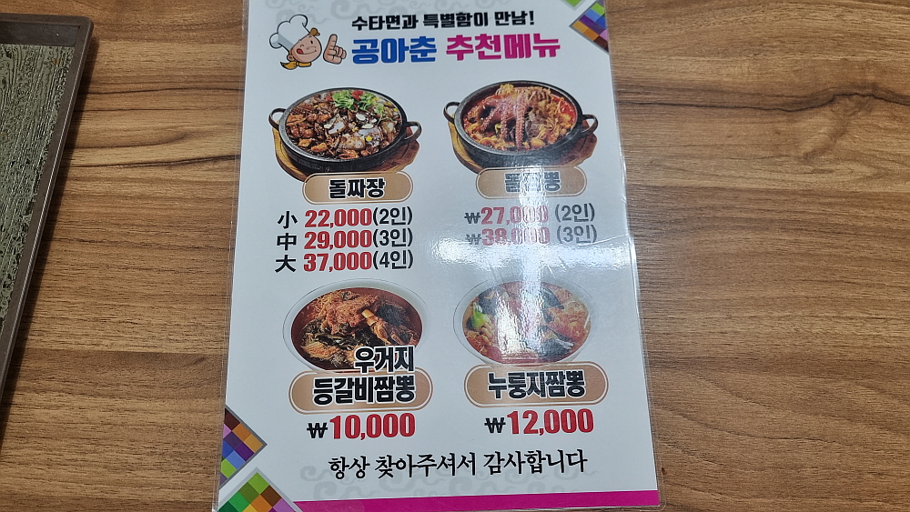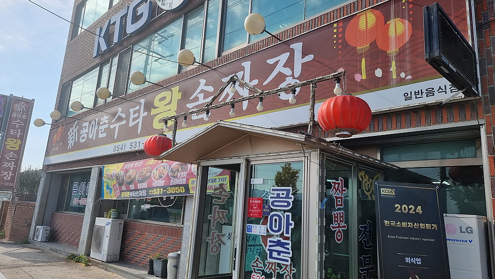 여행에서 절대 포기할 수 없는 맛난 점심식사 시간이 다가왔다. 고속도로 휴게소에서 먹는 것을 과감히 포기하고 우리는 올라가는 길 중간에 있는 상주시로 들어갔다. 경북 상주시는 한 번도 가본적이 없는 도시였다. 곶감이 유명한 곳으로 알고 있었는데 과연 상주시는 가로수도 감나무들이었다. 대단한 도시다. 가로수에 달려 있는 감들을 따 먹어도 되는지 상주시청에 전화할 뻔 했다. 여기서 우리가 가볼 집은 검색을 찾아 놓은 중국집이었다. 처음 가본 도시면 거기에 있는 색다른 음식을 먹어봐야겠지만 그냥 평이 많이 달려 있기에 이집으로 갔다. 이름은 공아춘 수타왕손짜장 이란 곳이었다.