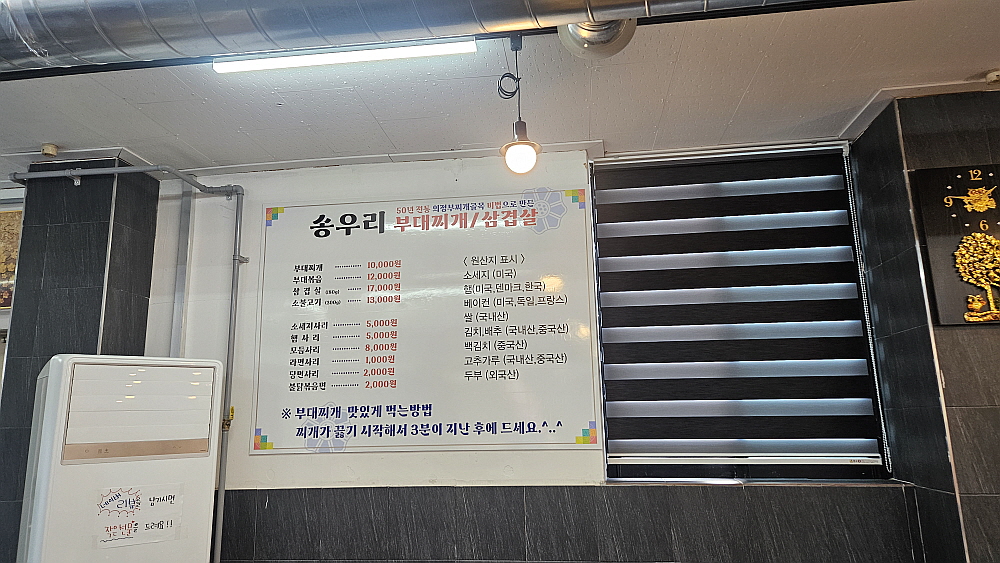 송우리에는 언제나 새로 생기는 식당이 있기 마련이다. 이곳이 도심지역이라 경기 흐름을 타기 때문일 것이다. 그래도 포천에서 제일 상권이 좋다는 곳인데 없어지는 집들도 무척이나 많다. 이래 저래 자영업자들에겐 혹독한 시절이다. 얼마 전 문을 열었다는 부대찌개 집이 있다는 말을 듣고 찾아갔다. 부대찌개를 아주 좋아하는 것은 아니지만, 새로 생긴 집이란 말에 가보고 싶어졌다. 추산초등학교 가는 길목에 있는 이집의 자리는 원래 고깃집이었다. 한동안 비어 있었던 것으로 기억한다. 자리가 그리 나쁜 편은 아닌데 이상할 정도로 문을 여는 집이 없었다. 그러다 이번에 이집이 생긴 것이다.