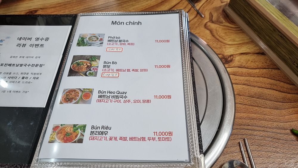 상호에서도 알 수 있듯 여긴 쌀국수 전문점이다. 당연히 메뉴에도 쌀국수가 메인으로 자리하고 있다. 국수의 가격은 모두 11,000원이다. 베트남 쌀국수는 국물이나 고명에 소고기가 들어가는데 여긴 그 고기를 한우로 했단다. 그래서일까 국수 가격치고는 좀 비싼 편이었다. 가장 노멀한 쌀국수와 분보라는 다소 매콤하다는 국수, 그리고 볶음밥과 우리식으로 하면 튀긴 만두라고 할까 춘권이라고 해야 할까 암튼 그것 비슷한 자요라는 것도 주문했다. 가게 안에는 손님이 세 팀정도 있었다. 베트남 쌀국수는 여성취향이라고 해야 할까? 손님 대부분이 여자들이었다.