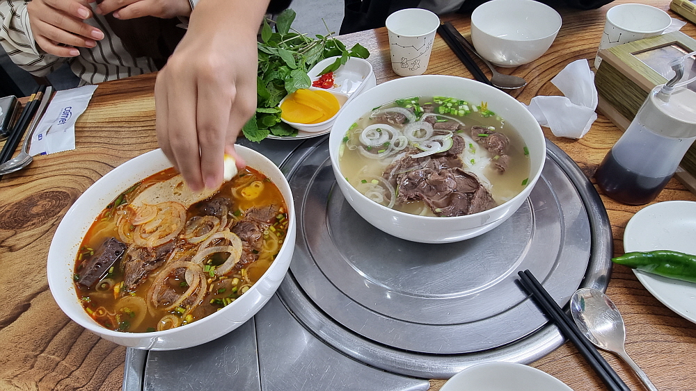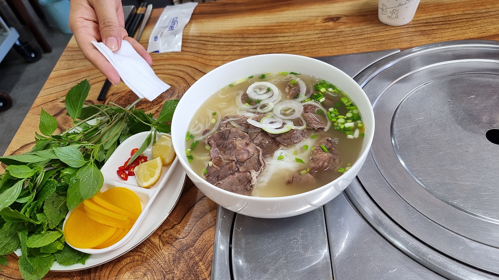 선지의 맛이 다를수가 없으니 우리가 평소 먹었던 선지해장국의 선지맛과 크게 다르지 않았다. '아...베트남에서도 우리네 선지해장국 같은 선지요리가 있구나' 하는 것을 알게 된 음식이었다. 국물이 그렇게 크게 매운 편은 아니고 구수하다고 할까 정말 딱 청진동의 선지해장국을 먹는 것 같은 그런 느낌이었다. 사람 먹는 것이 크게 다르지 않다. 선지는 세계적으로 많은 곳에서 먹는 음식일 것이다. 국수는 역시나 쌀국수였는데 그동안 먹었던 것보다 식감이 더 부드럽고, 밀가루 같다고 할까? 그런 느낌이었다. 쌀국수는 그냥 툭툭 끊어지는 다소 투박한 맛인데 말이다.