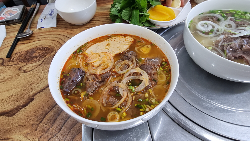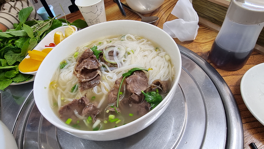선지의 맛이 다를수가 없으니 우리가 평소 먹었던 선지해장국의 선지맛과 크게 다르지 않았다. '아...베트남에서도 우리네 선지해장국 같은 선지요리가 있구나' 하는 것을 알게 된 음식이었다. 국물이 그렇게 크게 매운 편은 아니고 구수하다고 할까 정말 딱 청진동의 선지해장국을 먹는 것 같은 그런 느낌이었다. 사람 먹는 것이 크게 다르지 않다. 선지는 세계적으로 많은 곳에서 먹는 음식일 것이다. 국수는 역시나 쌀국수였는데 그동안 먹었던 것보다 식감이 더 부드럽고, 밀가루 같다고 할까? 그런 느낌이었다. 쌀국수는 그냥 툭툭 끊어지는 다소 투박한 맛인데 말이다.