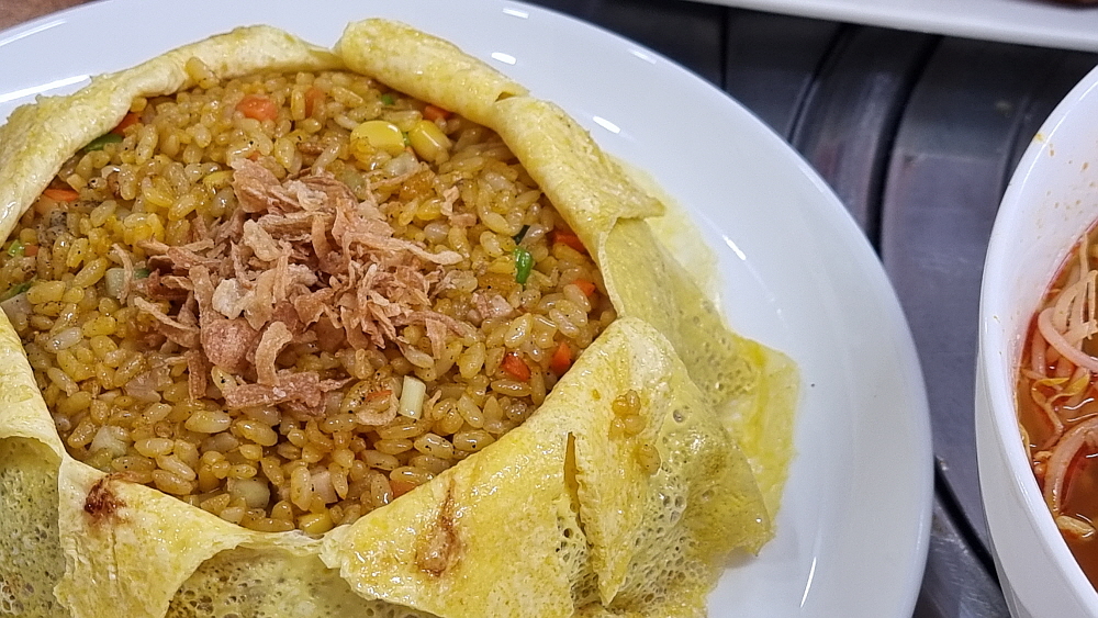 문제는 볶음밥인데 글쎄 이걸 뭐라고 할까? 밥알이 날아다닌다고 해야할까? 원래 볶음밥의 식감이라는 것이 밥알이 모두 따로 돌아다니는 것은 맞는데 마치 우리 쌀이 아니라 베트남에서 가지온 월남쌀 같다고 할까? 잘은 모르겠지만 찰지고 윤기가 흐르는 쌀을 예상했다면 좀 다른 식감에 실망을 할 수도 있다. 예쁘게 만들어 놓은 계란으로 된 용기에 꽤나 많은 양의 볶음밥이 들어 있었다. 먹다 보니 밑에 기름이 상당이 많이 가라 앉아 있는 것을 볼 수 있었다. 웍으로 볶는 방식은 비슷할 것 같은데 왜 이렇게 다른 맛이 나지? 볶음밥은 중국집의 그것이 가장 익숙한데 말이다.