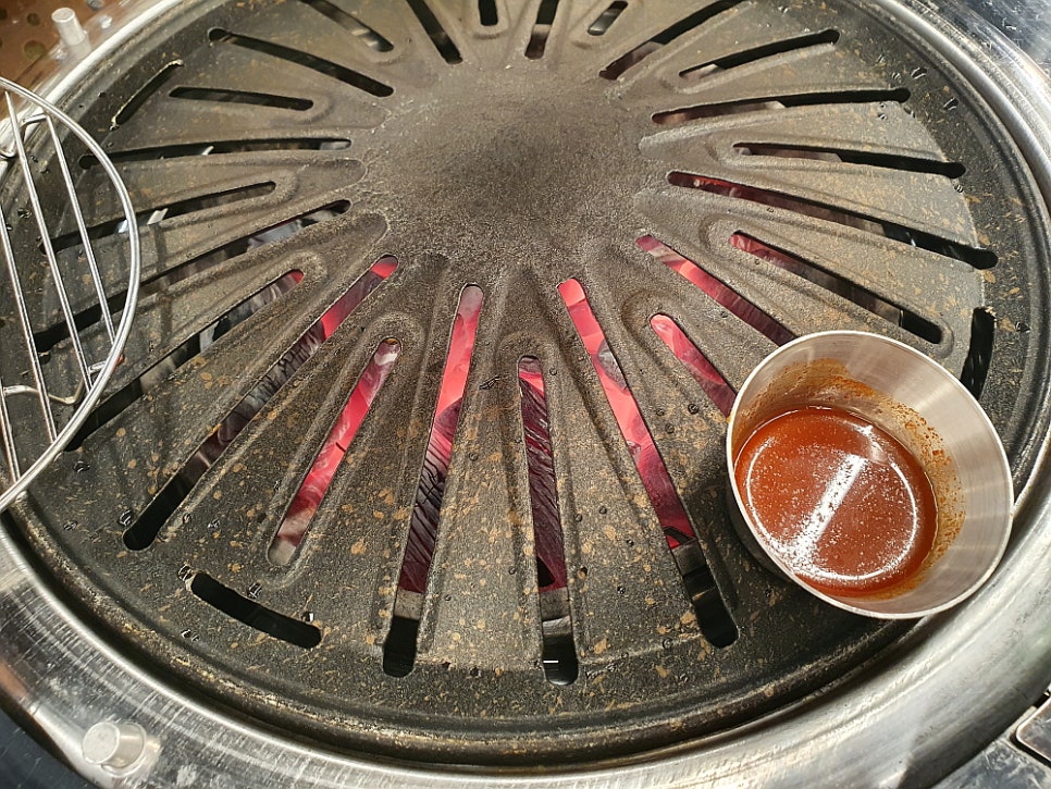 종업원에게 물어 보니 냉동 삼겹살을 둘둘 말아 놓고 그것을 잘게 자른 것이란다. 즉, 처음부터 이런 모양을 만들기 위해 삼겹살을 말아서 냉동시켰다는 말이다. 도대체 왜 이런 짓을 했을까? 그리고 전혀 어울릴 것 같지 않은 조개 관자와 또 하나 통풍 환자들은 먹기 힘든 표고 버섯, 이렇게 세 가지가 삼합이라는 말이다. 이런 조합은 정말 처음 보았다. 관자를 숯불에 구워 먹는 집도 처음이고, 삼겹살과 함께 굽는다는 곳도 보지 못했다. 과연 이런 새로운 시도는 맛이 좋을까?