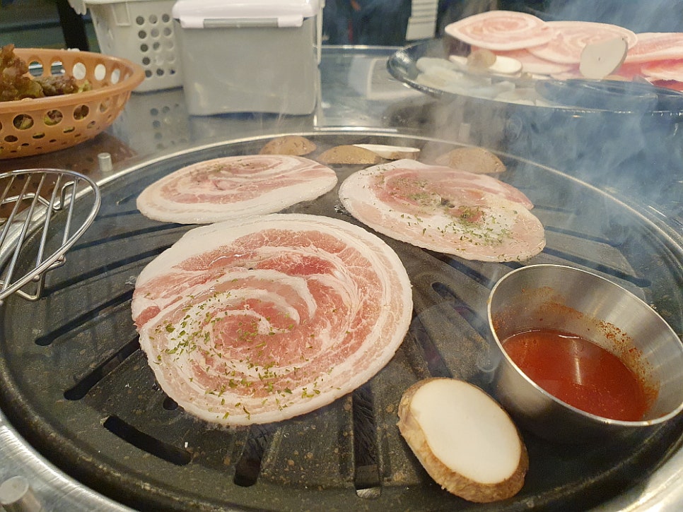 개인적으로 육고기를 좋아하지 않는다. 특히나 삼겹살은 정말 찾지 않는 메뉴다. 글쎄 특별한 이유는 없다. 그냥 별 맛을 모르겠고, 기름진 것도 싫고, 돼지고기 특유의 냄새도 나는 것 같고 하여 아무튼 즐기지 않는다. 온 국민이 즐기는 삼겹살을 좋아하지 않아 사실 회식 자리에서 곤역일 때도 있다. 다들 좋다고들 먹는데 나만 좀 시큰둥 한 경우가 많기 때문이다. 돼지고기와 소고기를 잘 먹지 않는다면 회식 자리에서 고를 수 있는 선택지는 정말 별로 없다. 하지만 이날 진주시 여행에서는 그런 나의 생각에 큰 변화를 가져다 준 정말 놀라운 삼겹살 집을 만났다.