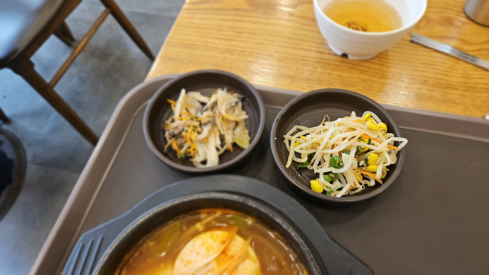 김가네라는 체인점 김밥집인데 이런 상호는 포천에서 본적이 없는 것 같다. 있었던가? 아무튼 김밥천국처럼 익숙한 상호는 아니다. 그래도 이른 아침에 맛난 김밥을 먹을 수 있다는 생각에 어찌나 반갑던지...원래 잘 모르는 동네에 가면 가장 흔하게 늘 먹던 것을 선택하는 것이 가장 현명한 일이다. 우리는 김밥과 순두부찌개 그리고 떡볶이를 주문했다. 가격이 조금 싼 편이지만 모든 것은 손님이 셀프로 해결해야 했다. 물도, 반찬도, 음식을 가져가는 것도 다시 반납하는 것도 모두 알아서 해야 한다. 마치 고속도로 휴게소 같은 느낌이라고 할까?