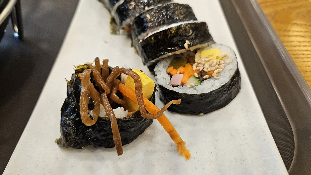 김가네라는 체인점 김밥집인데 이런 상호는 포천에서 본적이 없는 것 같다. 있었던가? 아무튼 김밥천국처럼 익숙한 상호는 아니다. 그래도 이른 아침에 맛난 김밥을 먹을 수 있다는 생각에 어찌나 반갑던지...원래 잘 모르는 동네에 가면 가장 흔하게 늘 먹던 것을 선택하는 것이 가장 현명한 일이다. 우리는 김밥과 순두부찌개 그리고 떡볶이를 주문했다. 가격이 조금 싼 편이지만 모든 것은 손님이 셀프로 해결해야 했다. 물도, 반찬도, 음식을 가져가는 것도 다시 반납하는 것도 모두 알아서 해야 한다. 마치 고속도로 휴게소 같은 느낌이라고 할까?