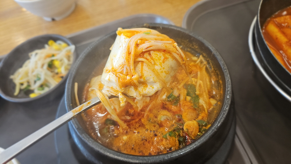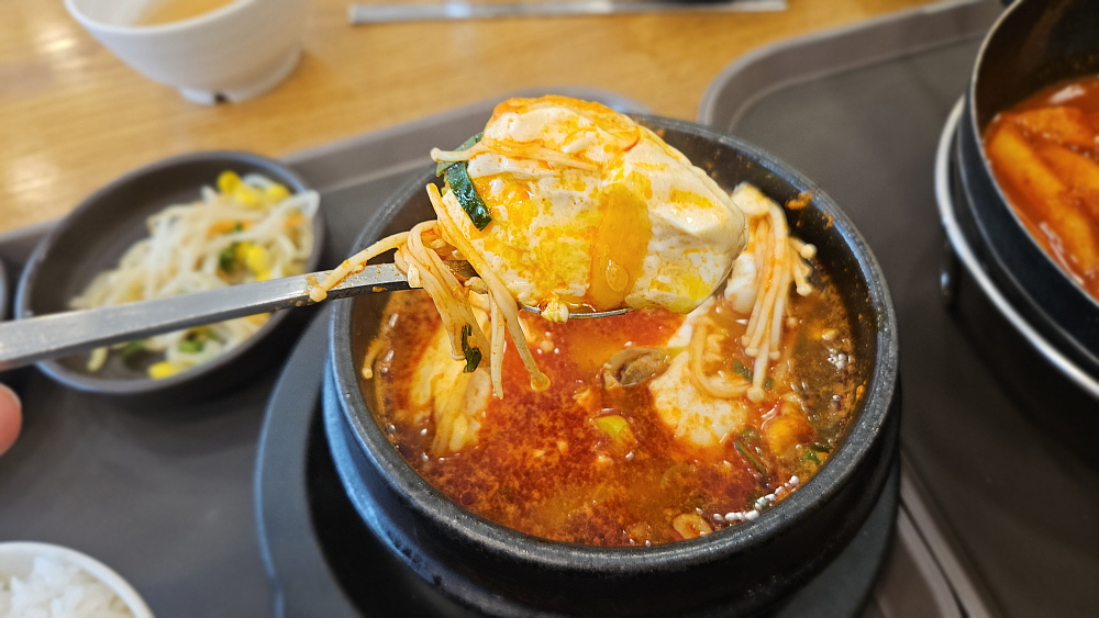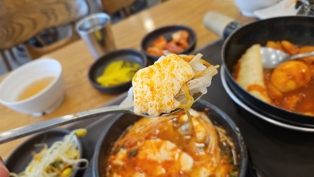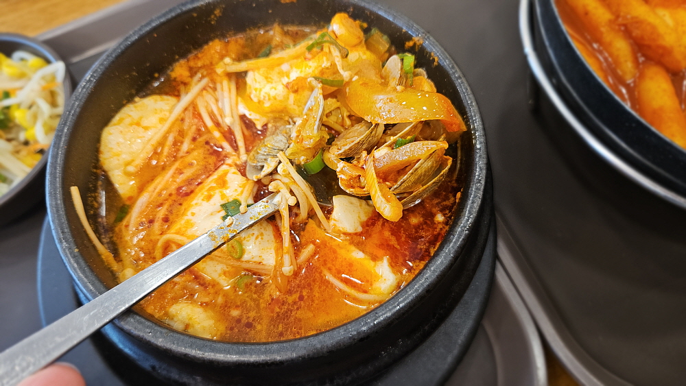 그리고 엄청 매워 보였던 순두부 찌개도 간이 세지 않고, 조미료를 많이 넣지 않은 건강한 느낌의 찌개였다. 아니 이럴수가~ 동네 분식집에서 건강한 맛을 만나게 되다니 신기했다. 떡볶이는 조금 과하게 달긴 했지만 떡볶이야 또 이런 맛에 먹는 것이니 이해해야 했다. 아무튼 가성비는 무척 좋은 곳이다. 그러니까 이렇게 아침부터 엄청난 배달 손님들이 밀리는 모양이다. 순두부 찌개는 그냥 밥을 확 말아 국밥처럼 먹을 때가 제일 좋은데 함께 나누어 먹어야 했기 때문에 그러질 못했다. 그래도 뜨끈한 국물에 하얀 쌀밥을 먹으니 제대로 된 아침상을 받은 기분이라 맘에 들었다.