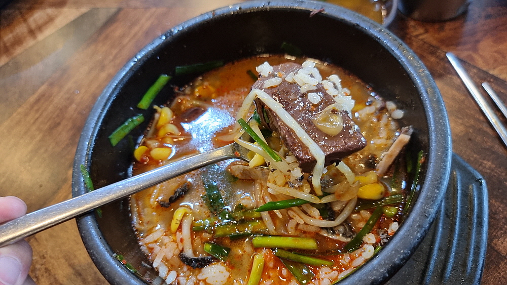 아무튼 우리는 그렇게 아침을 든든하게 잘 먹었다. 편의점에서 간단하게 사먹는 컵라면과는 영 다른 든든한 아침이다. 전날 과음한 사람들도 해장국 먹으면서 땀 한 번 흘리고 나면 몸이 거뜬해지는 법이다. 그래도 이날은 아침부터 푹푹 찌는 더운 날씨는 아니었다. 그러니 이런 자극적인 해장국도 먹을 수 있었겠지... 생각해 보면 해장국도 여러 버전이 있다. 콩나물도 있고, 북어도 있고, 해산물이나 생선으로 만드는 경우도 있다. 하지만 역시 선지해장국이 그 중에 제일 갑이 아닌가 한다. 지극히 개인적인 취향이지만 말이다.