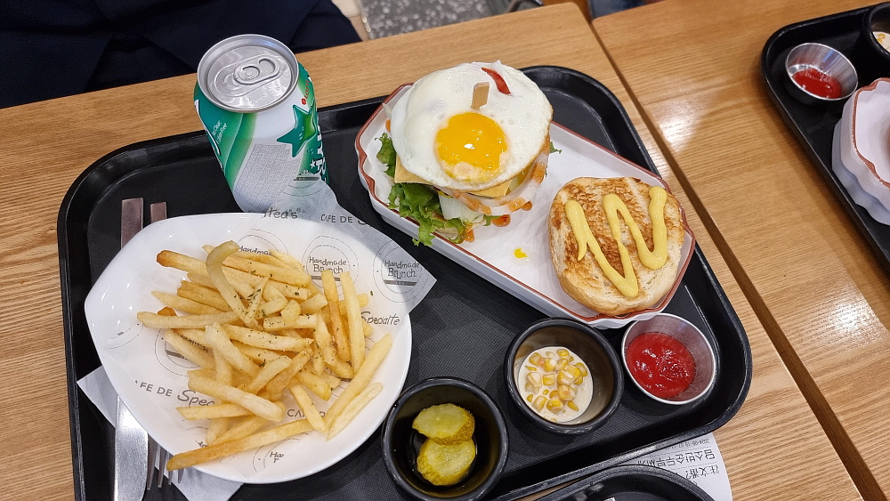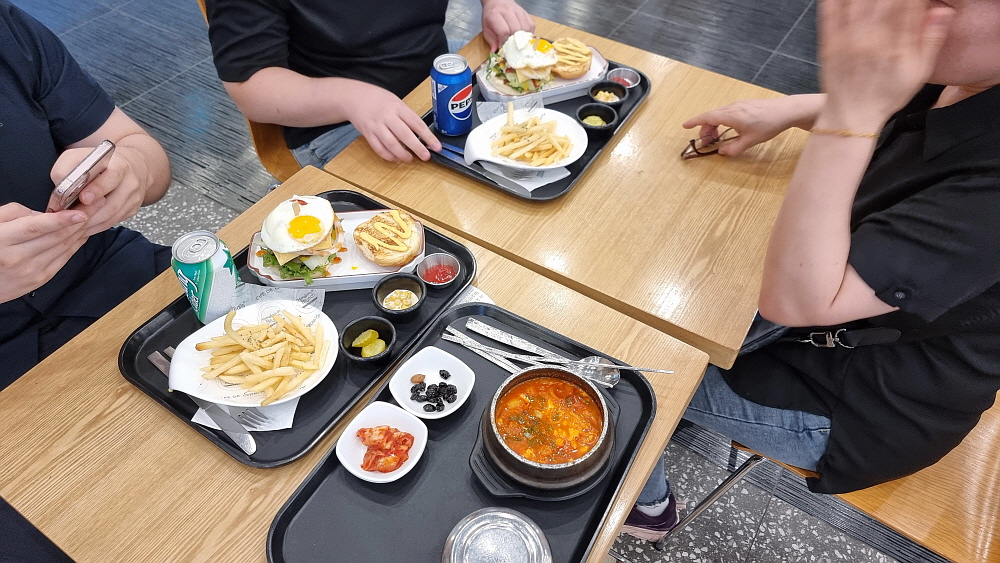 떡볶이나 설렁탕이 먹고 싶었지만 아직 시작 전이라 어쩔 수 없이 선택한 것인데 햄치즈샌드위치 세트가 20,000원이었고, 순두부찌개는 12,000원이었다. 간단한 조식을 위해 5만원이 넘는 돈을 지불했다. 이런... 그나마 한 사람이 먹기를 포기했으니 망정이지... 정말 어쩌다 한 번 먹는 코스라고 치부하고 자리에 앉아 음식이 나오길 기다렸다. 올 때 마다 느끼는 것인데 김포공항은 국내선은 정말 사람도 많고 이것 저것 서비스가 많지만 국제선은 한적하고 뭐 별 것이 없다. 썰렁하고 먹을 거리도 마땅치 않고, 뭔가 그냥 좀 홀대하는 느낌? 그런 것이 있다.