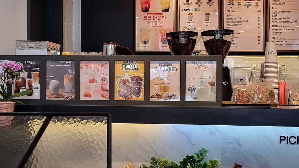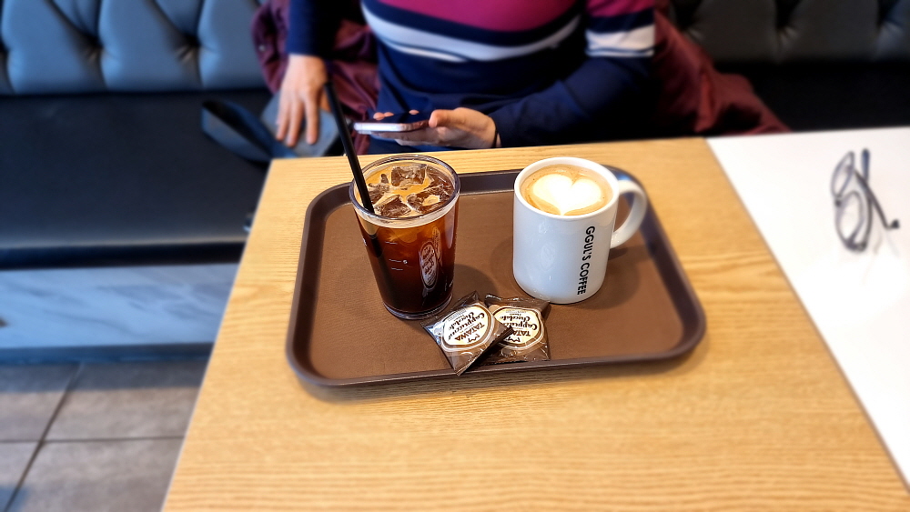 자세히 보니 이것도 체인점인 모양인데 이런 상호는 본적이 없다. 요즘 커피숍이 자영업 창업의 대세라 하니 당연히 체인점이 많은 것은 사실이지만 아직 들어보지 못한 체인점이 있다는 것은 놀라운 일이다. 아마도 서울 남쪽에 주로 있는 체인점인지도 모르겠다. 이런 상호는 의정부에서도, 구리에서도 보지 못했기 때문이다. 아무튼 시간이 그래서인지 손님이 없는 하가한 커피숍에 들어가 향긋한 냄새 맡으며 커피 한 잔 하기로 했다. 개인적으로 일명 '얼죽아' 계열이기 때문에 아무리 추워도 아이스 아메리카노를 주장한다.