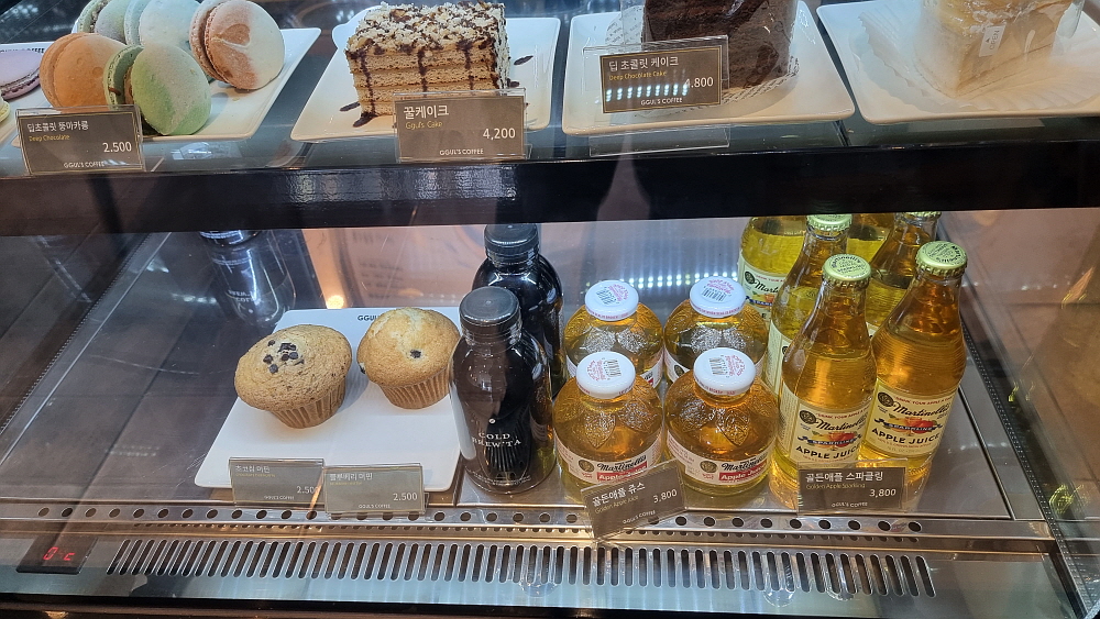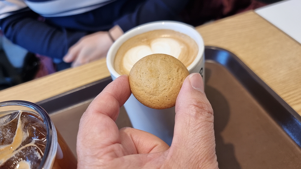 실내 인테리어는 여느 커피숍들과 크게 다르지 않았다. 꿀이라는 이름이 혹 우리가 아는 바로 그 달달한 꿀을 말하는 것일까? 그냥 주인장한테 물어보면 되지만 그러기 뭐해서 추측이 난무했다. 꿀이란 단어에 달달한 허니 말고 다른 뜻이 뭐가 있을까? 돼지가 내는 소리인 '꿀꿀?' 그건 아닌거 같고... 암튼 보기 좋은 라떼와 아이스 아메리카노가 나왔다. 앙증맞은 과자도 두 개 나왔다. 달달한 과자는 쌉쌀한 커피와 잘 어울리는 조연이다. 커피맛이 생각보다 좋았다. 이런 곳에서 진하고 강한 맛의 다크 아메리카노를 먹게 될 줄이야...
