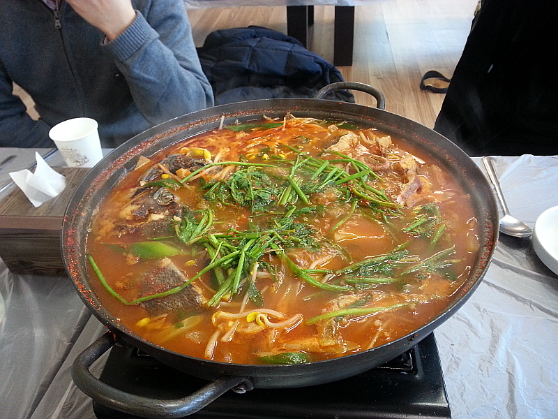 일행 중에 한분이 생선을 좋아하지 않는다는 사실을 우럭매운탕을 주문한 뒤에 알았다. 그분에게는 미안한 말이지만 우럭매운탕의 국물은 정말 시원했다. 회하면 광어고 매운탕하면 우럭이라고 하지 않턴가? 다만 양이 너무 적어 이곳이 관광지인가 하는 의구심이 들긴 했다. 매운탕을 회도 먹지 않고 이렇게 배부르게 먹는 경우도 나의 경우엔 아주 드문 일이다. 이번 워크숍 여행은 이런 새로운 경험을 많이 하게 되는군..