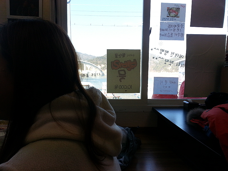 해병호집은 이렇게 어렵사리 가야 만날 수 있는 소무의도의 식당이다. 경치가 아주 좋은 것은 아니지만 옆으로는 작은 포구가 있고, 밀물이 되면 제법 늘어난 물에 바다 같은 풍경도 즐길 수 있는 곳이다. 하지만 이곳은 자연산 횟집이기 때문에 이런 겨울엔 횟감을 만나기 어렵다. 그래서 우리는 할 수 없이 주인이 추천해주는 메뉴를 먹을 수밖에 없었다. 그것은 바로 쭈꾸미 숙회와 우럭매운탕이었다.