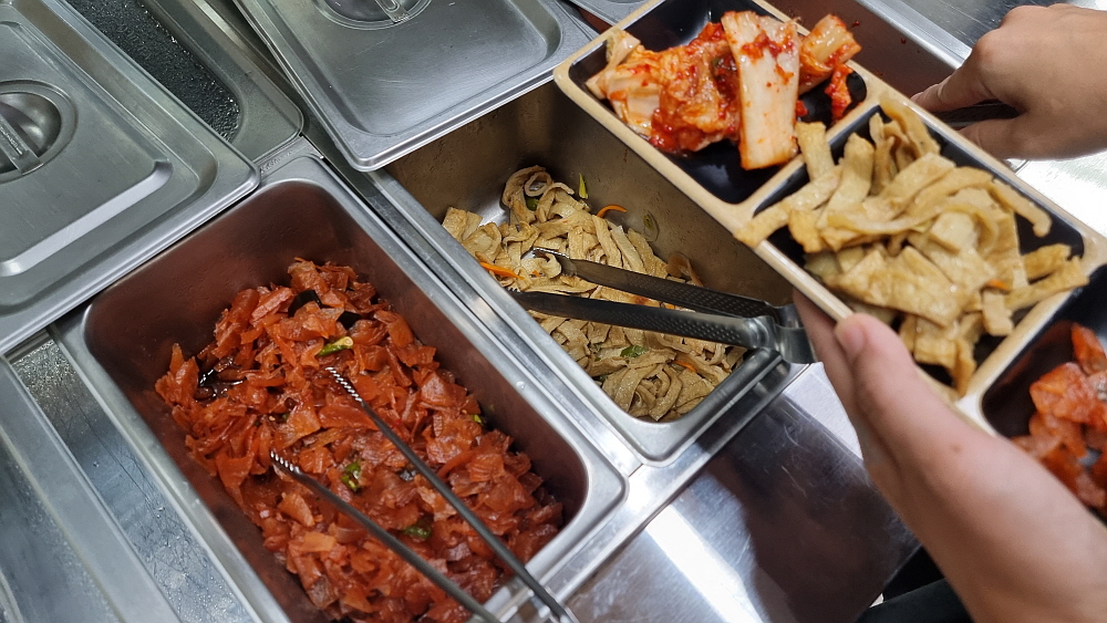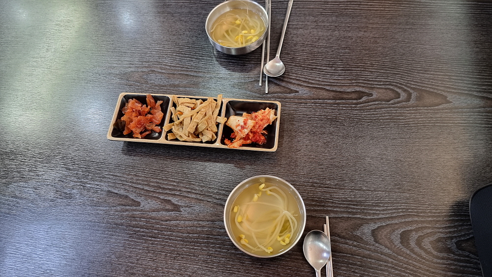 이집은 반찬과 밥을 손님이 직접 퍼 오는 방식이다. 밥을 많이 먹는 사람은 알아서 본인이 더 퍼 오면 되는 것이다. 반찬도 마찬가지다. 이날 국은 콩나물 국이었는데 별 것 들어간 것이 없지만 상당히 깊은 맛이 났다. 국이 맛나면 일단 주인장의 음식솜씨에 대한 신뢰가 간다. 대부분의 손님들은 고기를 위주로 주문하는 모습이었다. 하지만 역시 고등어김치찜을 능가할 반찬은 없을 듯 했다. 맛만 있다면 말이다. 오랫만에 고등어 김치찜을 먹게 되어 약간의 흥분까지 되었다. 손님들 대부분은 이 식당을 자주 찾는지 주인장과 말을 섞어 가면서 자연스럽게 대화들을 했다.