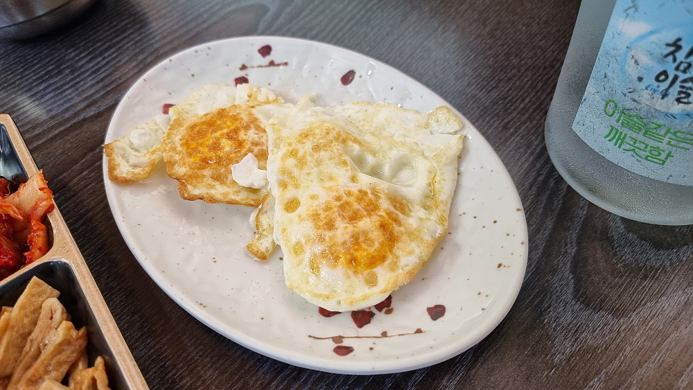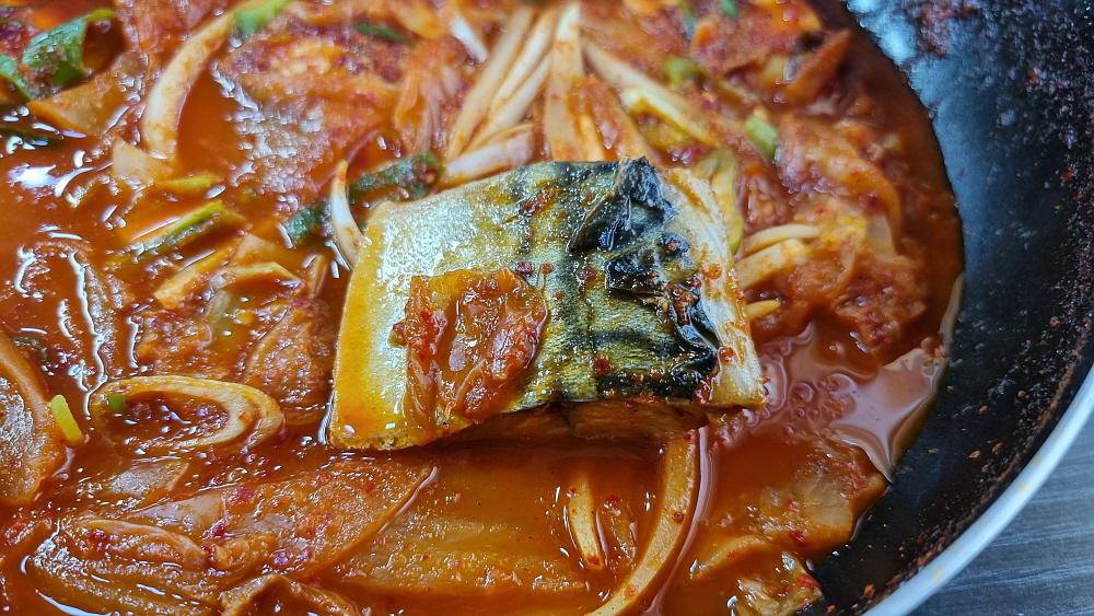 드디어 주문한 고등어김치찜이 나오고 이날은 서비스라고 계란 후라이드 주었다. 고등어 김치찜과 잘 어울리는 반찬이다. 고등어와 김치의 조화는 굳이 말하지 않아도 한국 사람이라면 누구나 아는 바로 그 맛이다. 이런 자연스러우면서 진한 반찬이 있다면 밥 도둑이 따로 없다. 처음에 먹을 땐 몰랐는데 먹다 보니 김치가 꽤나 매웠다. 맵질들한테는 쉽지 않은 도전이다. 연신 흐르는 땀을 닦느라 여념이 없었다. 그래도 맛이 좋으니 이 일을 어쩐단 말인가? 가장 한국적이면서 가장 먹고 싶은 그런 점심 메뉴였다.