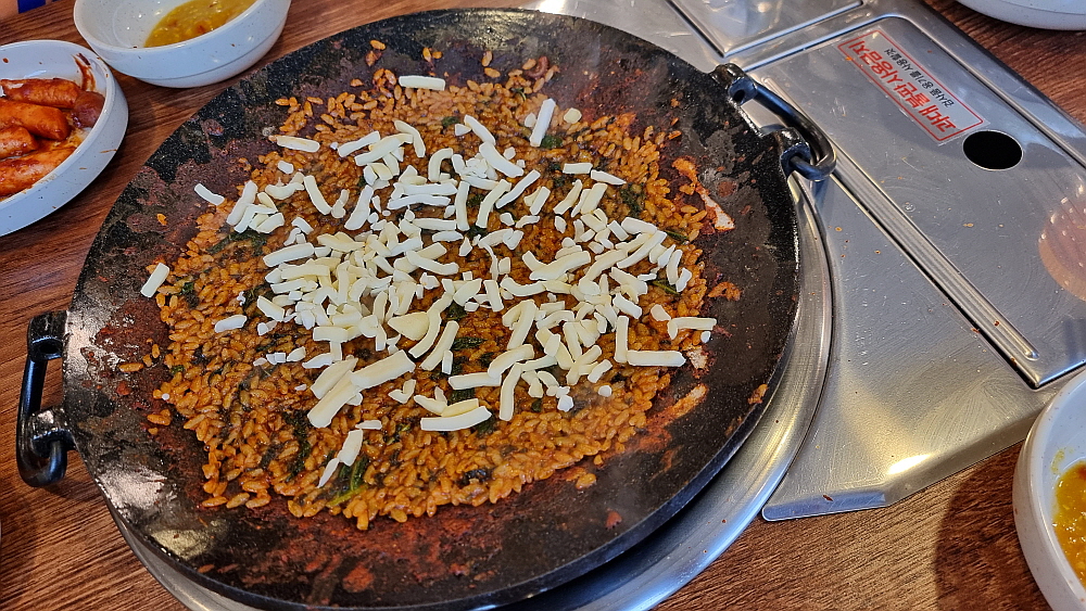 떡과 쭈꾸미와 콩나물의 박자가 아주 잘 맞을 때 쯤이면 드디어 쭈꾸미들은 뱃속으로 모두 사라지게 된다. 하지만 참 아쉽다. 낙지도 쭈꾸미도 많이 집어 먹은 것 같은데 먹고 나면 뭔가 덜 먹은 것 같은 아쉬움이 남는다. 아마도 이런류의 음식들이 모두 그런가 보다. 그래서 하는 수없이 볶음밥이라는 마지막 카드를 꺼내 들었다. 그렇지 우리에겐 아직도 볶음밥이 남아 있었지... 매콤한 양념과 쭈꾸미가 혼합되어 볶아진 마지막 볶음 양념은 포기하기 힘든 유혹이자 마지막 보루같은 것이다. 한국 사람들은 감자탕이든, 삼겹살이든, 곱창이든 넓은 팬에서 구워 먹는 음식들은 모두 볶아 버린다.
