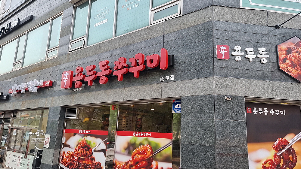직장이 장안동이었을때 용두동을 자주 지나갔는데 그 때마다 이해하기 힘든 장면이 연출되는 집을 보았다. 용두동 사거리 부근에 있는 쭈꾸미 집이었다. 어찌나 사람이 많던지 퇴근 무렵이 지날 때는 아예 줄이 장사진을 이루는 것을 거의 매일 보았다. 한국 사람들의 매운 맛 사랑은 어제 오늘 일이 아니지만 이렇게까지 줄을 서서 먹는 집은 흔치 않다. 바로 그렇게 사람들의 사랑을 받았던 용두동 쭈꾸미가 체인 사업을 하는 모양이다. 같은 이름의 쭈꾸미 식당이 송우리 먹자골목 근처에 등장했기 때문이다. 솔직히 용두동을 지나면서 보기만 했지 그 맛이 어떤지 들어가 보진 못했다.