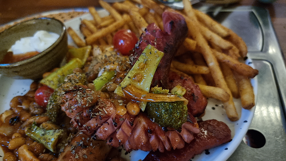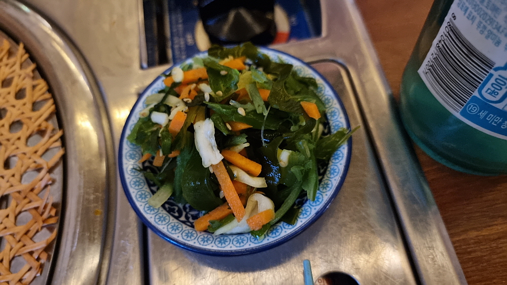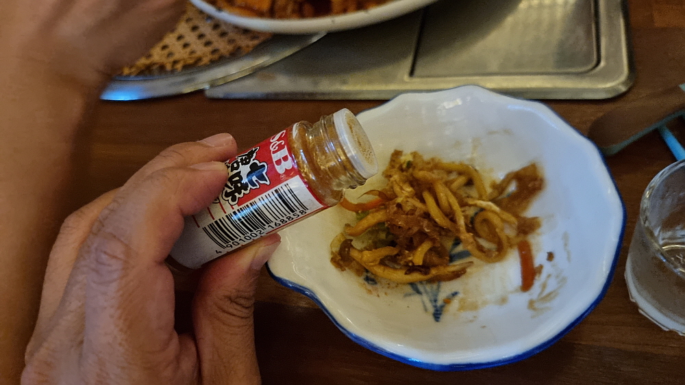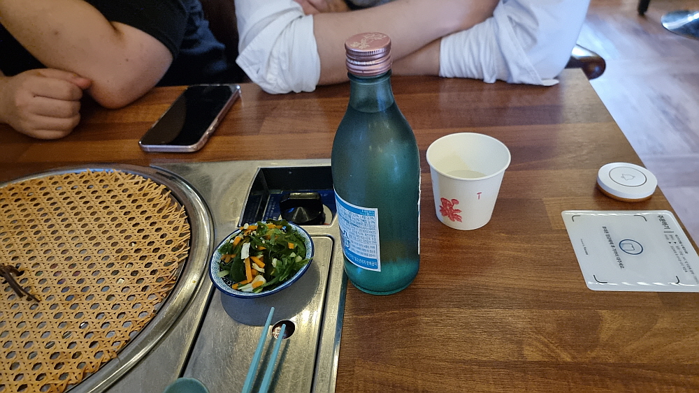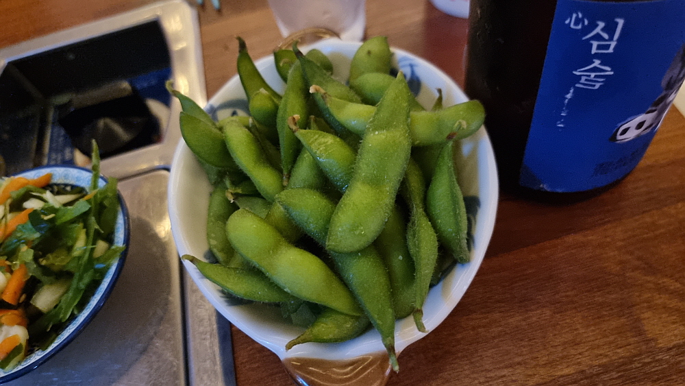 음식을 주문하는 방식도 우리와 사뭇 달랐다. 우리 키오스크를 이용하는 경우가 많은데 여긴 QR코드를 이용하여 웹상에서 주문하는 방식이다. 우린 키오스크에서 결제까지 하는 경우도 있지만 웹상에서는 그렇지 않다. 일단 주문만 하는 것이다. 사진과 가격, 자세한 설명이 있어 어떤 면에서 보면 키오스크보다 좋지만 스마트 폰으로 웹을 이용하는 것이 서툰 노인들에겐 아주 어려울 수 있는 방식이다. 어쨌든 우린 일단 물에 살짝 데친 깍지콩과 볶은면, 일본 소시지 그리고 술을 주문했다. 저런 간단한 콩을 안주로 돈내고 먹는 한국 사람은 많지 않을테지만 콩을 좋아하니 그냥 주문하기로 했다.