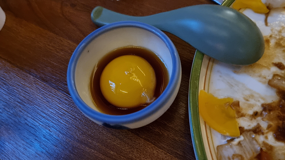 일본사람들이 잘 쳐 먹는다는 시치미까지 뿌려 먹으니 정말 일본에 와 앉아 있는 기분이었다. 하지만 역시나 양이 많지는 않았다. 그래서 어쩔 수 없이 하나를 더 시키기로 했다. 날은 덥지만 그래도 국물 안주 하나는 있어야겠기에 요즘 유행한다는 나베를 주문하기로 했다. 배추와 소고기, 그리고 야채와 진한 육수를 함께 끓여 먹는 일종의 찌개가 바로 나베라 할 수 있다. 잘 익은 배추와 소고기를 날 달걀에 찍어 먹는 것이 정통의 방식이란다. 익숙치 않은 구성이지만 요즘엔 마트에서 아예 이렇게 미리 손질한 나베를 일회용기에 담아 팔 정도로 젊은층에서 인기가 많다.