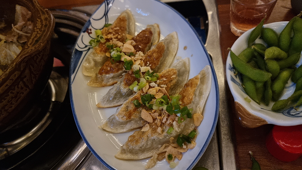 그리고 마지막으로 입가심 하듯 일본식 만두를 먹었다. 교자라 부르는 일본식의 만두는 꼭 한쪽만 익히는 방식으로 만들어 준다. 우리나라처럼 쪄 먹거나 물만두로 먹는 일 없이 그냥 이렇게 팬에서 익혀 굽듯이 조리하는 것이 일본풍 만두의 특징이다. 일본의 만두집은 모두 기성품이 아닌 직접 만든 만두를 팔지만 여긴 그냥 기성품 같았다. 하지만 조리를 정통 방식으로 잘 해서인지 맛이 아주 훌륭했다. 교자까지 먹으면 이젠 가야 할 시간이라는 의미이다. 마치 일본의 여러 지역을 돌아다니며 음식을 먹은 것처럼 다양하고 맛난 요리들을 잘 먹었다. 여긴 정말 일본이 맞네...