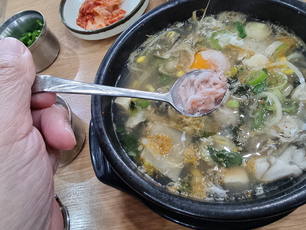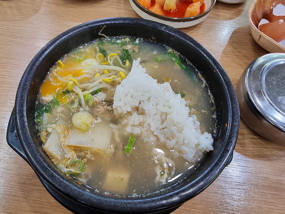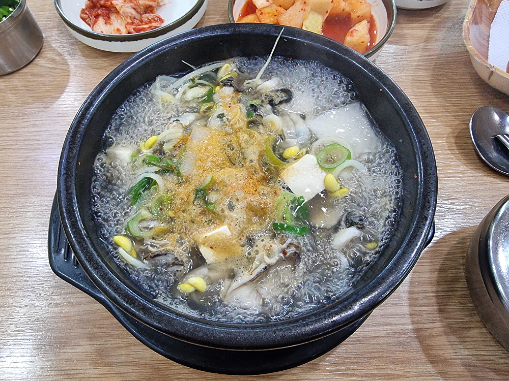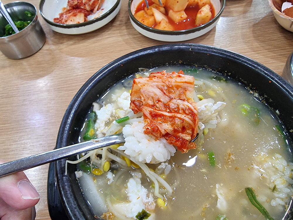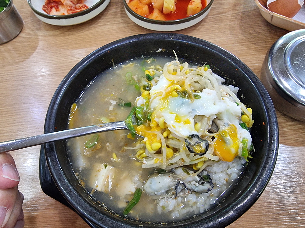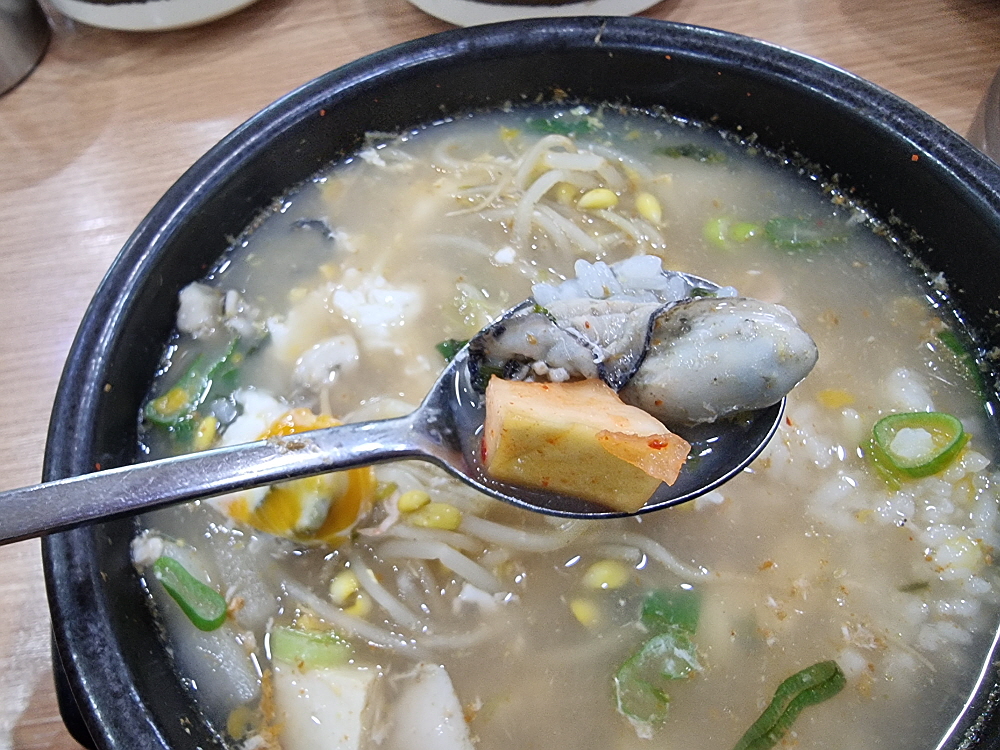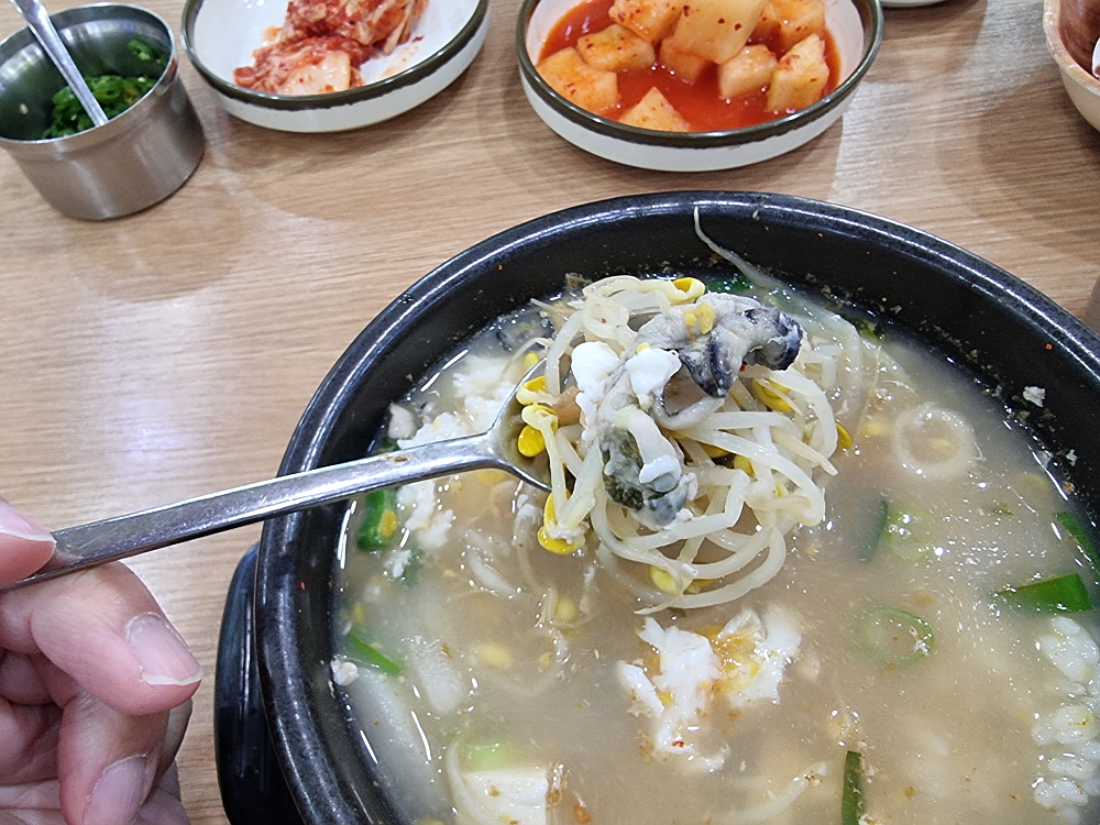 우리는 일반적인 해장국과 굴해장국을 주문했다. 요즘 노로바이러스 때문에 굴먹기도 부담스러운 시절이지만 푹 익힌 해장국의 굴이야 먹어도 문제가 되지 않으리라. 콩나물 해장국은 가장 저렴한 음식 중에 하나다. 그런데도 굴 해장국은 가격이 9천 원이었다. 이젠 아주 저렴한 해장국이라 하기도 그렇다. 그래도 이런 푸짐한 콩나물 해장국을 이른 아침에 먹을 수 있다는 점만으로도 이날은 그냥 다행이다 생각하기로 했다. 누군가가 차려주는 밥상을 받을 때는 항상 이런 생각을 해야 할 것이다. 다행이고, 고맙다는...