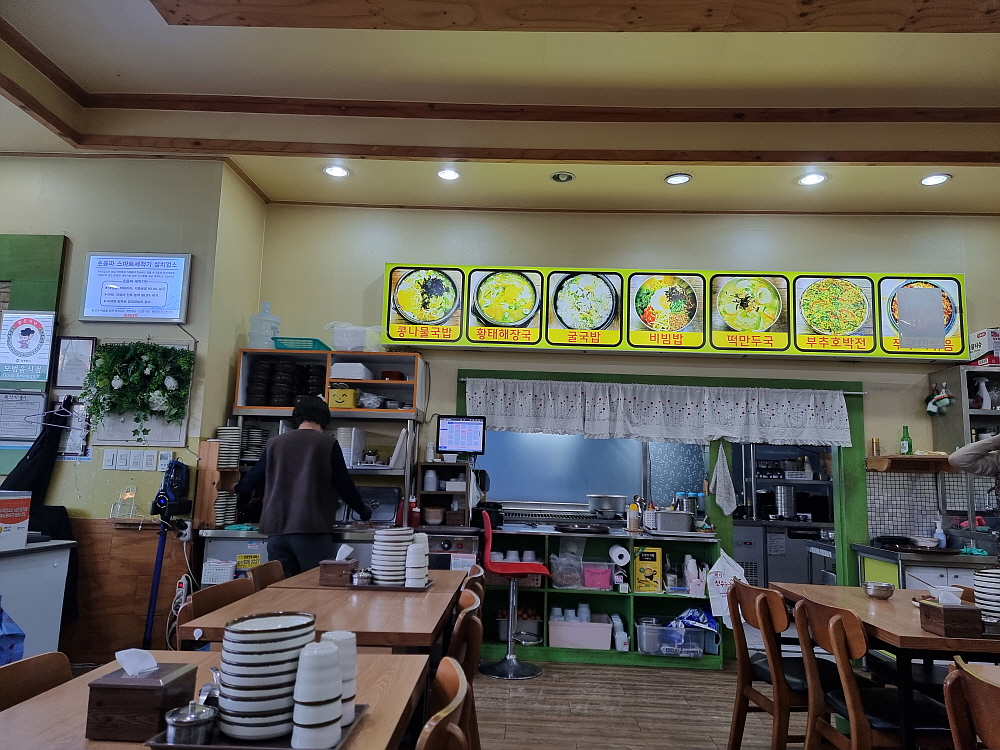코로나 이후 바뀐 것이 있다면 자영업자들이 무척 힘들다는 것도 그 중 하나다. 먹자골목으로 유명했던 이곳도 코로나를 지나면서 상가가 많이 침체된 모습이었다. 물론 양주 옥정이나 민락동에 새로운 신도시가 만들어지면서 상권이 이동한 탓도 있지만, 분명 자영업의 어려움도 있어 보였다. 아주 이른 아침도 아닌데 문을 연 집이 거의 없었다. 예전에 그렇게 많았던 24시 해장국 이런 집들도 안 보였다. 하긴 인건비가 비싸니 그런 형식의 장사도 쉽지 않을 것이다. 그러다 눈이 띈 집이 바로 이집이었다. 역시나 24시간을 한다는 콩나물 해장국 집이었다.