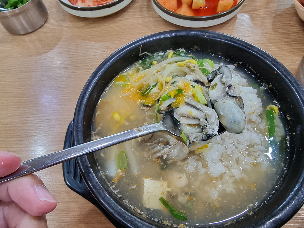 우리는 일반적인 해장국과 굴해장국을 주문했다. 요즘 노로바이러스 때문에 굴먹기도 부담스러운 시절이지만 푹 익힌 해장국의 굴이야 먹어도 문제가 되지 않으리라. 콩나물 해장국은 가장 저렴한 음식 중에 하나다. 그런데도 굴 해장국은 가격이 9천 원이었다. 이젠 아주 저렴한 해장국이라 하기도 그렇다. 그래도 이런 푸짐한 콩나물 해장국을 이른 아침에 먹을 수 있다는 점만으로도 이날은 그냥 다행이다 생각하기로 했다. 누군가가 차려주는 밥상을 받을 때는 항상 이런 생각을 해야 할 것이다. 다행이고, 고맙다는...