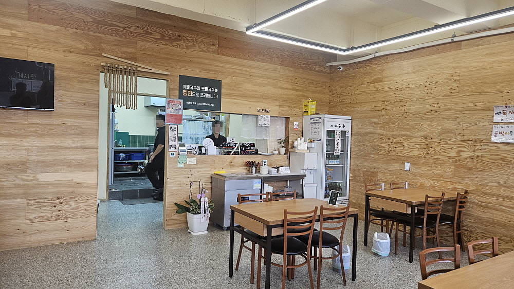 가게 안은 밖에서 볼 때보다 더 커보였다. 이집이 영업을 하기 전에도 식당자리였던 것 같은데 이전엔 무엇이 있었는지 기억이 나지 않았다. 신읍동 시내는 사실 상권이 많이 축소되었다. 지방 경제의 암울한 현실이 느껴지는 단면이 있다. 그렇지만 계속 식당이나 술집은 생기고 없어지고 한다. 사실 자영업은 선택이라기 보다 현재 우리나라에서는 필수일 수도 있다. 아무튼 여기 새롭게 국수집이 들어섰다는 것은 아주 즐겁고 기분좋은 일이다. 우리는 비빔국수와 만두 그리고 김밥도 주문했다. 처음 온 집이니 이것 저것 먹어봐야 제대로 된 맛을 알 수 있을 것 같았다.