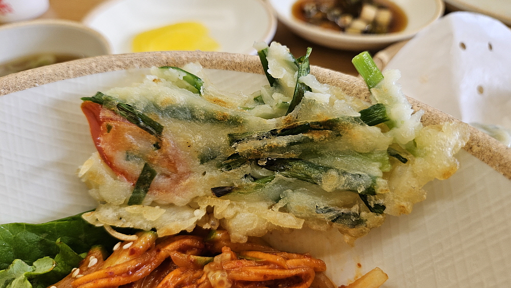 달지 않은 만두도 맘에 들었다. 아빠국수라는 상호와 달리 여긴 김밥 맛집이었다. 이런 자연스럽고 자극적이지 않으면서 입에 착 붙는 김밥이라면 분명 주변에서 많은 이들이 김밥 먹으러 올 것 같다. 만두는 일반적인 공장만두같았지만 역시 맛이 좋았다. 점심으로 먹는 분식같은 한 끼가 참 푸짐하고 꽉찬 느낌이었다. 그래도 뭔가 허전한 것 같아 우리는 파전까지 주문했다. 파전의 가격은 9,000원이다. 참으로 착한 가격이다. 나중에 나온 파전을 보니 이것 역시 집에서 내가 먹기 위해 만든 것 같은 그런 비주얼과 맛이었다. 여기는 전체적으로 자극적이지 않은 요즘 시중의 흐름과는 조금 다른 느낌의 집이라 하겠다.