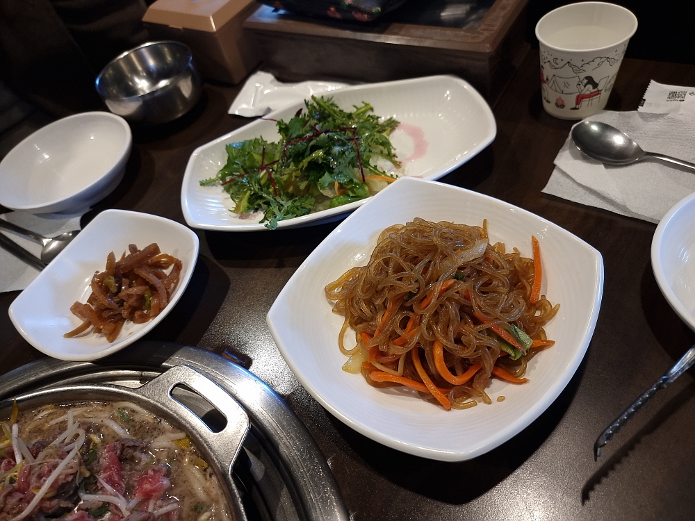 불고기의 양도 많은 편이다. 밖에서 몸쓰는 일을 하는 사람들이 먹어도 넉넉하다 할 정도의 양이다. 거기에 반찬도 제법 많이 나온다. 특히 맛났던 것은 잡채였다. 불고기에 들어 있지 않던 당면을 잡채로 만난 셈이다. 그냥 반찬으로 만든 잡채라기 보다는 제대로 만든 잡채라 우린 두 번 정도 리필하여 먹었다. 이렇게 잡채를 먹으니 더 잔치집에 온 것 같은 기분이 들었다. 불고기는 달달한 양념에 국물을 떠 먹는 맛이 제일이 아닌가 한다. 여기 불고기도 넉넉한 육수가 함께 했고, 필요하다면 더 부어서 먹으면 된다. 어릴 땐 불고기 국물에 밥을 비벼 먹는 것이 제일이었다.