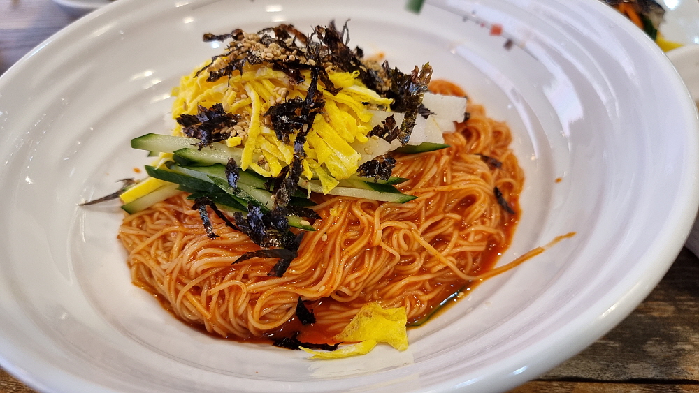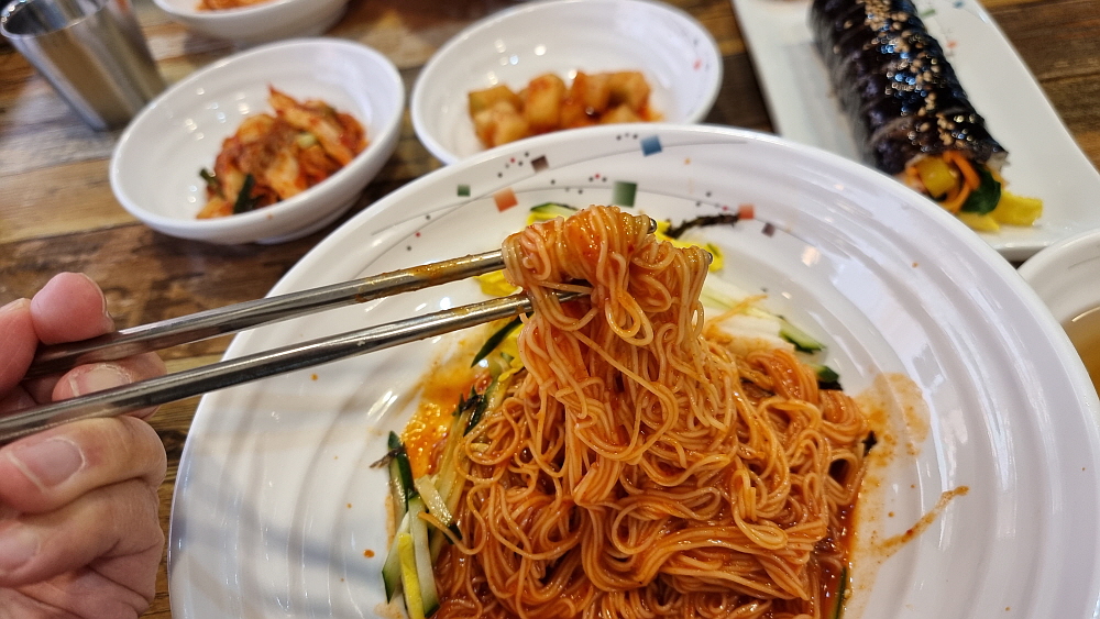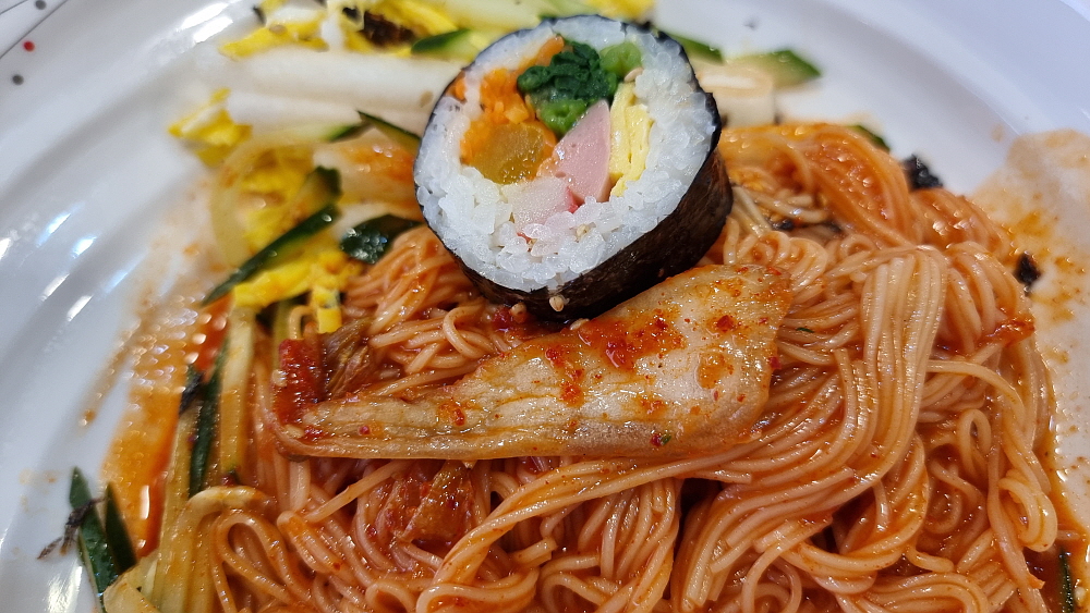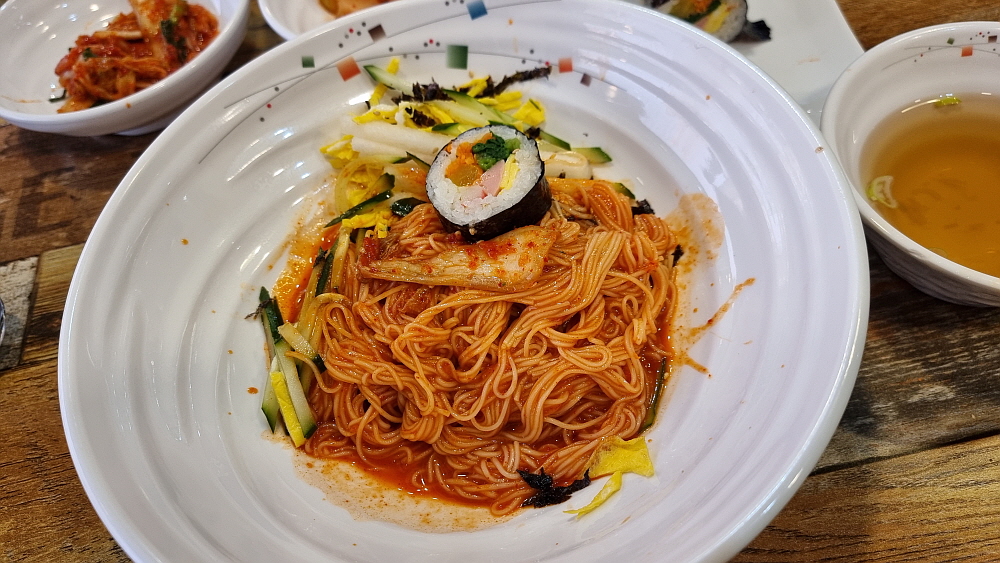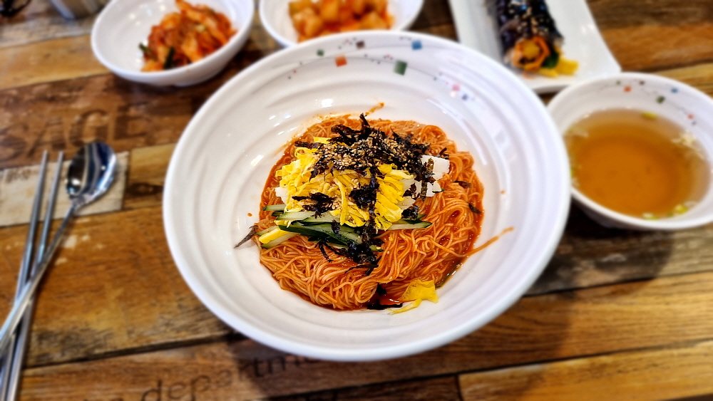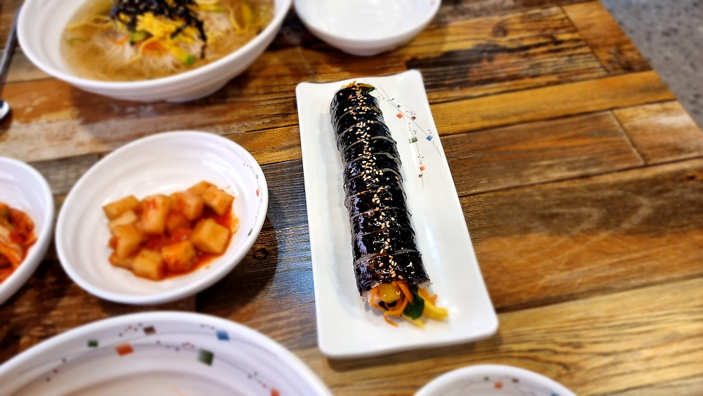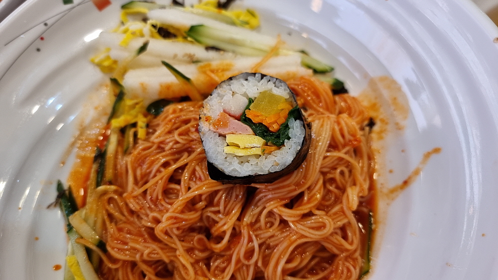 특이한 것은 아주 가느다란 소면을 사용한다는 것이다. 마치 함흥냉면의 면발을 먹는 것 같은 기분이었다. 이렇게 가는 면은 관리하기 힘들텐데... 그냥 일반적인 소면을 사용해도 될 것 같은데 말이다. 반찬도 맛나고, 국물이나 양념이나 훌륭했다. 김밥은 야채 김밥이라 했는데 이것도 그냥 집에서 식구들이 먹을 때 만들어 먹을 것 같은 아주 자연스러운 맛이었다. 요즘 김밥은 조미료나 설탕 또는 매운 양념을 너무 많이 넣는다. 그런 단짠맵이 싫은 사람들에게 아주 적합한 김밥이었다. 전체적으로 보면 역시 상호에서 알 수 있듯 비빔국수보다는 잔치국수가 더 나은 선택 같았다.