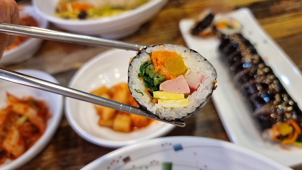 간단한 분식이지만 자세히 보면 들어간 정성이 꽤나 많은 것을 알 수 있다. 잔치국수나 비빔국수의 고명은 분명 재료를 그냥 사다 넣은 것이 아니라 일일히 지단을 붙이고 잘라 넣은 것일 것이다. 김밥은 일부러 강한 양념을 쓰지 않고 요즘 잘 넣지 않는 시금치도 들어가 영양을 생각한 음식이라 하겠다. 단촐한 음식이지만 정성껏 만든 손님을 생각하는 주인장의 마음이 느껴지는 메뉴들이었다. 과연 이렇게 괜찮은 가성비와 분위기인데 손님은 그닥 많아 보이지 않았다. 아마 장사를 시작한지 얼마 되지 않아서겠지?