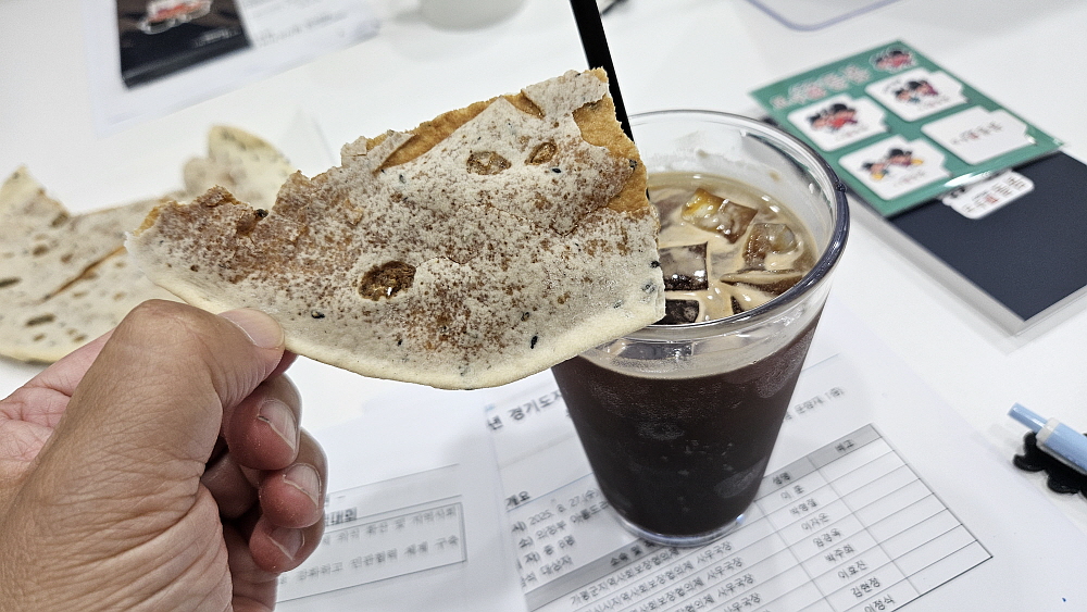 그래도 커피와는 찰떡 궁합이었다. 달달한 과자 같은 빵과 쌉쌀한 커피의 만남은 서로의 맛을 없애는 것이 아니라 상승시키는 묘한 맛이란 느낌이 더 강했다. 하긴 이러니까 카페에서 처음 보는 이런 빵을 만들어 팔겠지... 서울 강남에서는 한 개에 엄청 비싸게 팔기도 한다는데 여기서는 한 개에 2천 원인가 그랬다. 빵값마저 착하다. 아름드리카페는 가성비로 선택해도 좋을 곳이란 사실을 다시 한 번 알게 해준 날이었다. 회의도 잘 하고 커피도 잘 마시고 신기하게 생긴 빵도 먹고 일석삼조이 날이란 말인가?