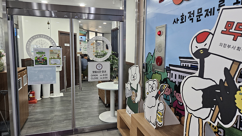의정부에서 회의를 하게 된 것은 아주 오랜만이다. 근처에 있는 동네인데 이상할 정도로 의정부에서는 회의를 하지 않았다. 이번 회의는 의정부 시청 내에 있는 아름드리카페에서 진행했다. 의정부시청을 온 것도 몇 년만인지 모르겠다. 십 수년은 된 것 같다. 가까우면서 멀다는 말이 이래서 나오는 모양이다. 아름드리카페는 장애인을 고용하는 일종의 보호작업장 같은 곳이다. 장애인들이 직업을 갖고 일을 하면서 지역 공동체의 일원으로 함께 사는 방안을 모색하는 곳이라 하겠다. 여기는 수익보다는 의미가 중요한 곳이다. 하지만 그래도 카페이니까 커피맛도 좋아야 한다.
