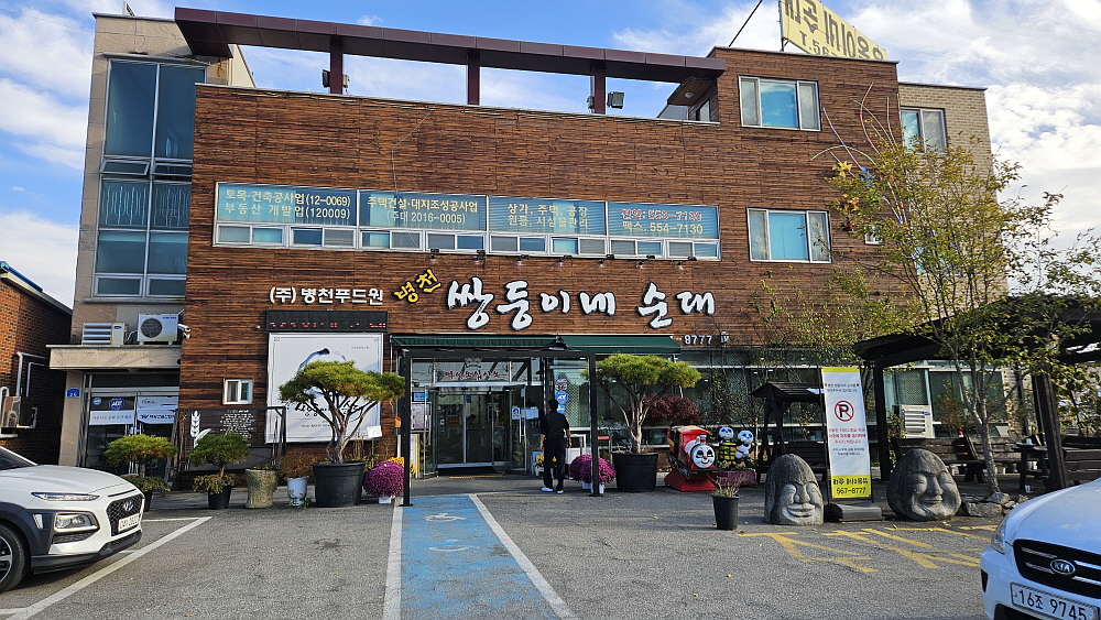 원래 천안의 병천은 순대로 유명한 곳이었다고 한다. 하지만 유명 연예인이 소개하면서 더욱 알려지게 된 것이라 한다. 병천 순대는 우리네 무봉리 순대처럼 지역 이름이었던 것이다. 왜 내륙에 있는 병천에 이렇게 순대가 유명하게 되었는지는 잘 모른다. 다만 포천도 그렇고, 여기도 그렇고 근처에 도축을 하는 시설이나 축산 관련 시장이 있었기 때문에 그런 것이 아닌가 한다. 아무래도 재료를 구하기 쉬운 곳에 이런 명물 식당들이 생기는 법 아니던가... 우리가 병천에서 오리지널 순대를 먹은 적은 없었다. 이번에 처음 먹게 된 것인데 현지인의 추천으로 이곳 쌍동이네 순대국으로 왔다.