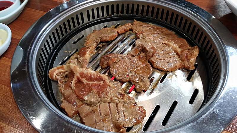 43번 국도변에 떡 하니 자리 잡은 이집은 전통을 자랑하는 집답게 예전 방식으로 갈비를 파는 곳이다. 여기는 돼지갈비가 온 식구의 나들이 기념 음식으로 인기가 높던 80년대 모습이 그대로 남아 있다. 이런 돼지 갈비를 보면 과거의 생각이 난다. 어쩌다 한 번 온 식구가 돼지갈비 먹으러 시내로 나갈 때 왜 그리 마음이 두근거렸는지 갈비 먹을 생각에 온통 들뜬 저녁이었다. 옷에 밴 갈비 냄새 마저도 그렇게 싫지 않았던 시절이었다. 아무리 시대가 바뀌어도 서민들의 만찬으로 돼지갈비는 아직도 인기가 높다. 술 한 잔 하기에도 이만한 음식이 없고, 뭔가를 기념할 때도 잘 어울린다.
